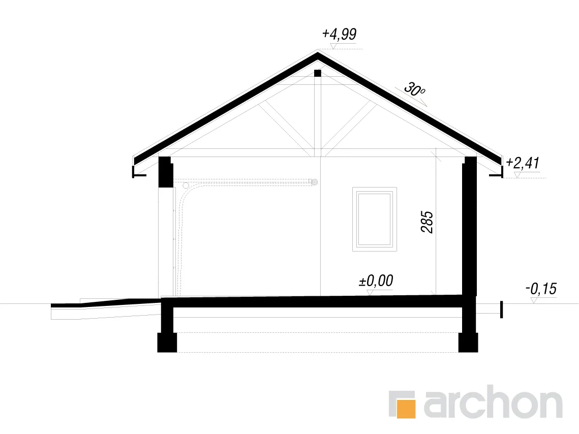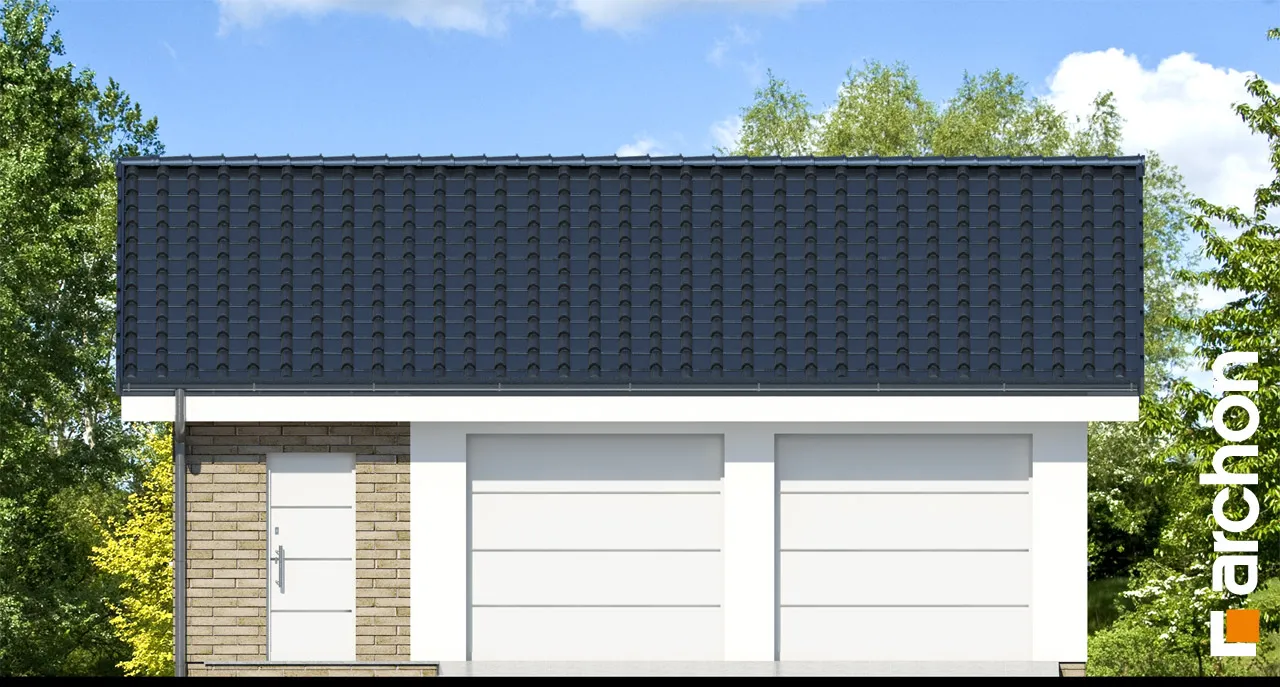 Проект одноэтажного гаража на две машины с отдельным подсобным помещением. Здание имеет компактную форму с двускатной крышей, что позволяет просто и быстро его построить и хорошо вписывается в окружающую среду. Для отделки использовалась светлая штукатурка, обогащенная каменной облицовкой, а все это дополнено керамической черепицей контрастного цвета. Гараж имеет естественное освещение и имеет двое отдельных въездных ворот на передней стене, что обеспечивает удобный въезд и парковку автомобилей. Проектом также предусмотрен отдельный вход в подсобное помещение, дверь расположена рядом с воротами на фасаде. В гараже есть место для шкафов или полок для хранения шин и других автомобильных аксессуаров, а подсобное помещение идеально подходит для хранения садовых инструментов или реже используемых предметов. Представленный проект относится к категории: гаражи, навесы, хозяйственные постройки.