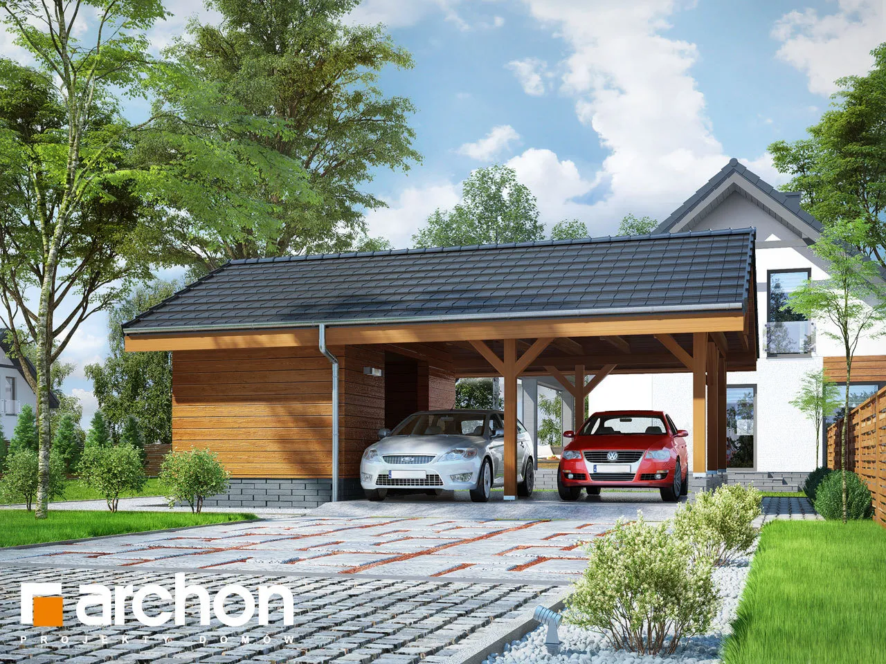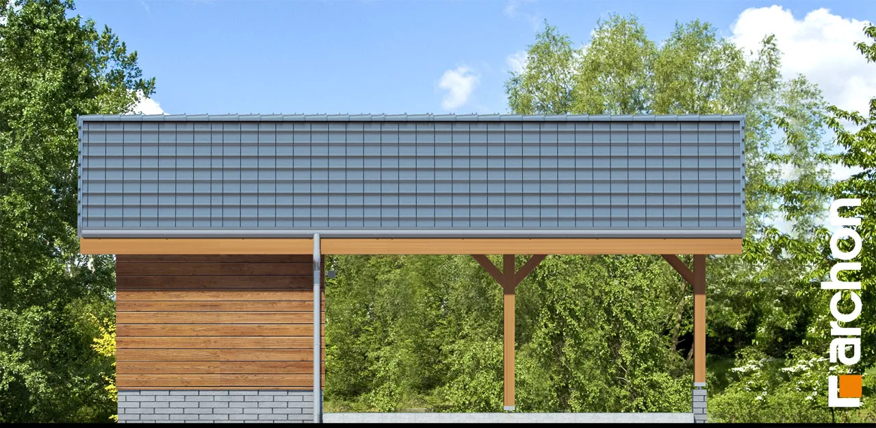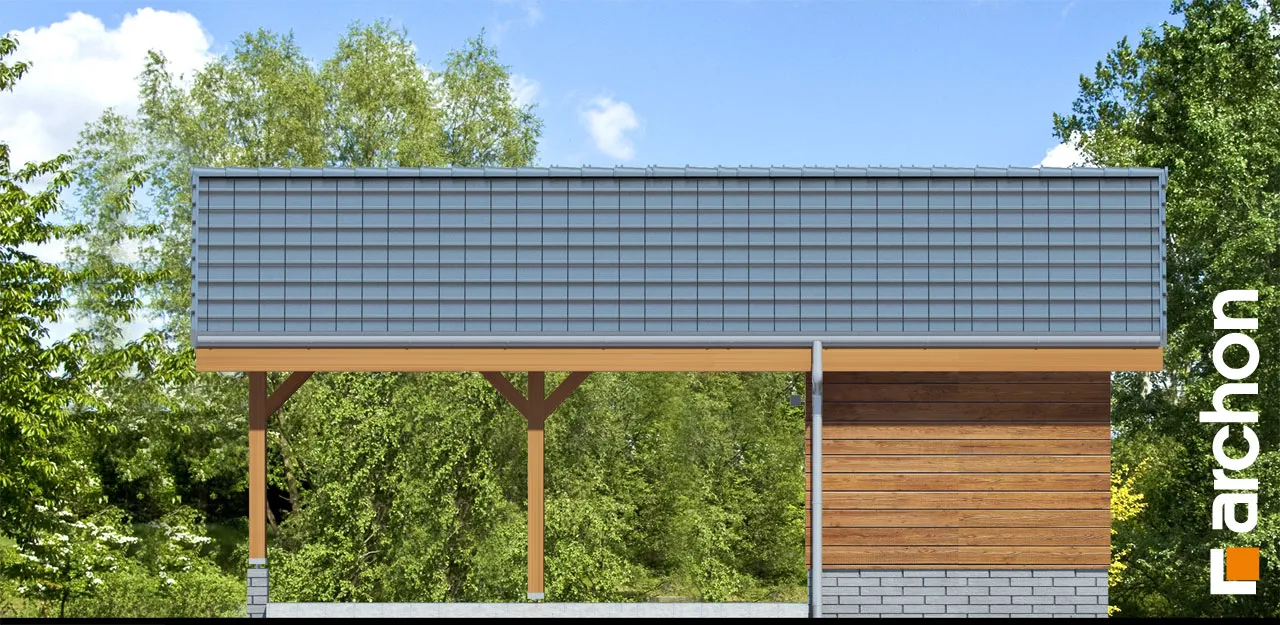 Представляем проект навеса для машины, площадь которого составляет 49,56 м2, а также включает в себя подсобное помещение. Конструкция увенчана двускатной крышей антрацитового цвета, модно соответствующей композиции натуральной столярки, задуманной на фасаде. Интересным элементом, придающим визуальной ценности деревянному блоку, является то, что конструкция опирается на цоколи из серого клинкерного кирпича. Навес, являющийся идеальной альтернативой отдельно стоящему гаражу, имеет прямоугольную форму и позволяет инвесторам удобно парковать свои автомобили на двух парковочных местах. Преимуществом такого сооружения является гораздо меньшая стоимость строительства такого сооружения по сравнению с классическим гаражом. Просторное подсобное помещение позволит инвесторам комфортно хранить необходимый садовый и спортивный инвентарь, автомобильную технику и даже дрова для домашнего камина. Благодаря продуманному внутреннему оформлению помещения домочадцы смогут насладиться практичностью данного строения. «Навес Н6» расширяет категорию: гаражи, навесы, хозяйственные постройки.