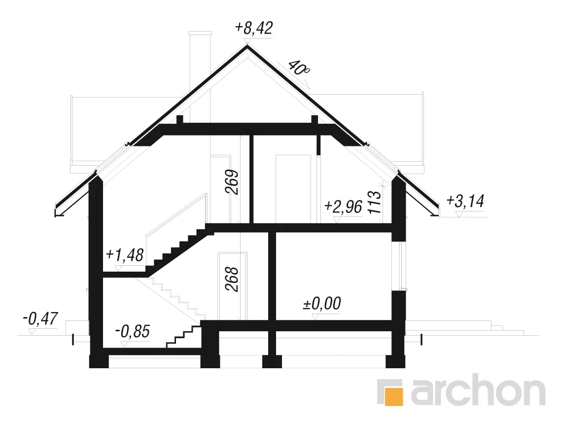 - Разрезы со всеми размерами (высоты этажей, кровли и др.)