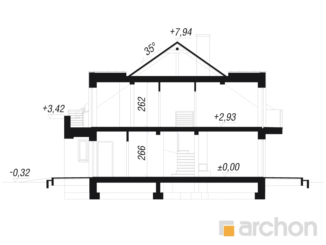 • Разрезы со всеми размерами (высоты этажей, кровли и др.)