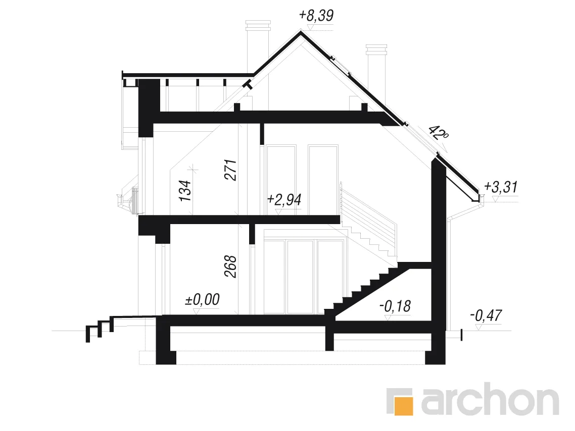 - Разрезы со всеми размерами (высоты этажей, кровли и др.)