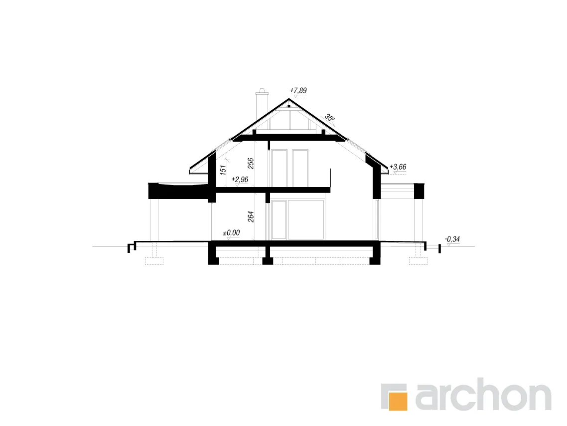 - Разрезы со всеми размерами (высоты этажей, кровли и др.)