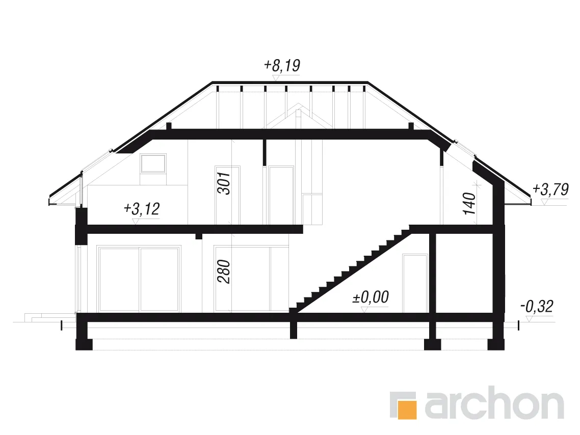 - Разрезы со всеми размерами (высоты этажей, кровли и др.)