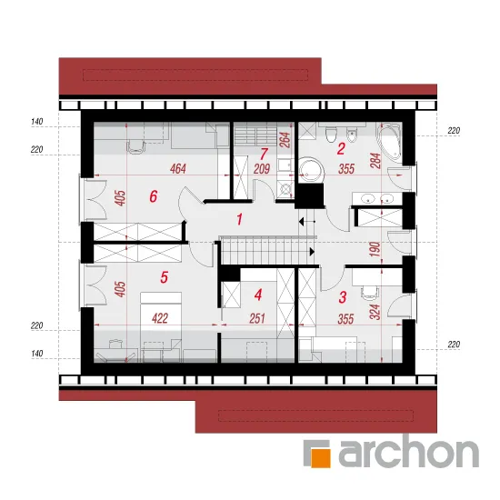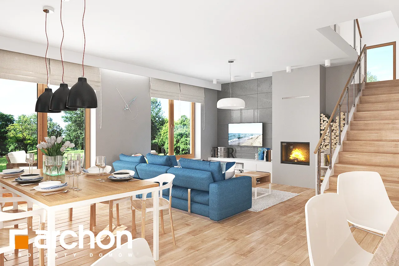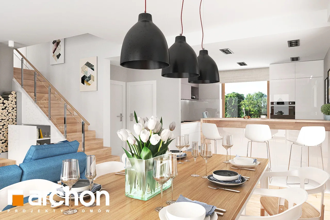 Дом в красотах 2 относится к категории недорогих проектов домов, так как он экономичен в строительстве благодаря компактному корпусу на основе прямоугольного плана земли, простой конструкции и использованию двускатной крыши, удобной для пользователей мансарды. На первом этаже интерьер разделен на две зоны - хозяйственную и жилую. Подсобная зона состоит из гаража на одну машину и расположенной за ним котельной. В жилой зоне отказались от разделения помещений перегородками, благодаря чему гостиная, столовая и кухня образуют одно большое открытое пространство с отличным солнечным освещением. Мансарда является ночной зоной и состоит из трех просторных, одинаково хорошо освещенных спален, прачечной и ванной комнаты. Кроме того, в одной из спален, предназначенной для родителей, оборудована гардеробная. Проект Дом в красотах 2, идеально подходит для тех, кто ищет энергоэффективный дом с низкими затратами на отопление.