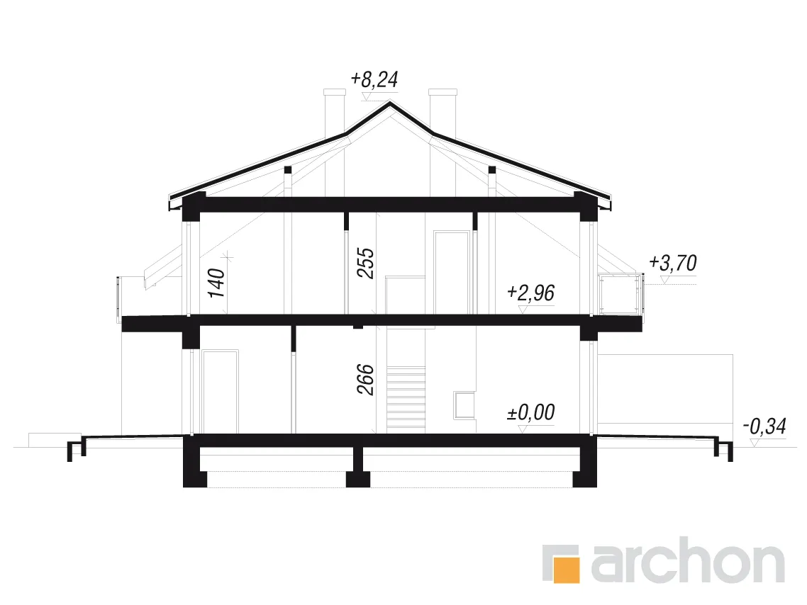 - Разрезы со всеми размерами (высоты этажей, кровли и др.)