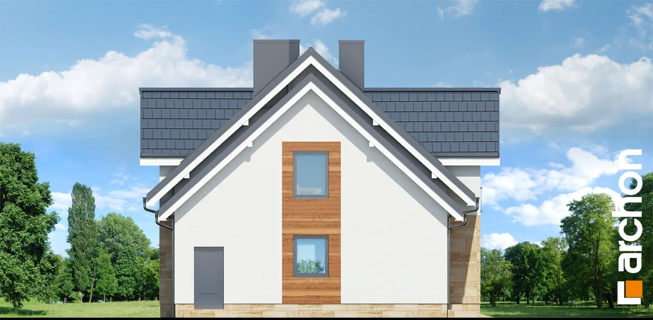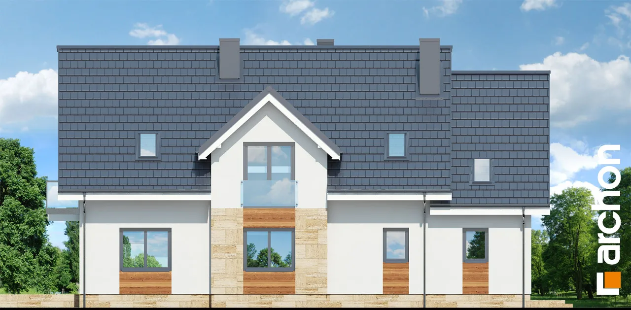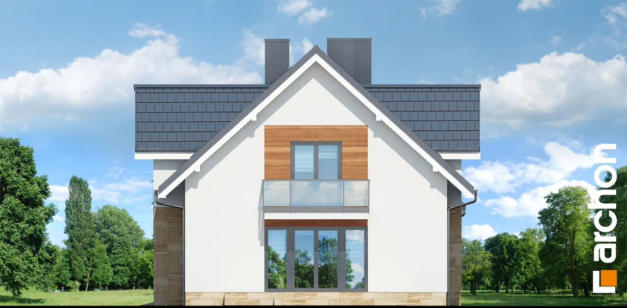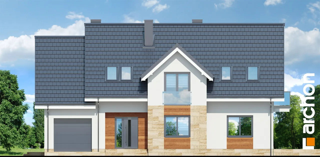 Мы хотим пригласить вас ознакомиться с исключительно функциональным проектом дома, который идеально вписывается в участки с входом с юга. Простой корпус дома украшен привлекательным, расположенным по центру здания ризалитом на фасаде и в саду, а приглушенная цветовая гамма придает всему дому чрезвычайно стильный вид. Этот элегантный характер дома подчеркивается яркой и естественной облицовкой фасада и стеклянными балюстрадами. Просторная гостиная зона обеспечивает комфортный отдых для всех проживающих. Просторная гостиная условно разделена на зону отдыха с угловым диваном перед домашним кинотеатром и камином и обеденную зону с семейным столом, который можно свободно раздвинуть для проведения праздников или других торжеств. Панорамное остекление прекрасно освещает интерьер и плавно соединяет дом с окружающим садом. На большой террасе можно организовать дополнительную зону отдыха на открытом воздухе. Преимуществом такой кухни является оптимальное количество места для работы. Из коридора можно попасть в дополнительную комнату, которая идеально подходит в качестве кабинета или гостевой спальни, благодаря расположенной рядом ванной комнате с душем. Из большого тамбура, где размещены вместительные стенные шкафы, есть доступ к гаражу и котельной на твердом топливе с отдельным внешним выходом. Двойная лестница ведет в удобную спальную зону в мансарде. Здесь есть три спальни, общая ванная комната, гардеробная и прачечная с проходом на чердак, который остается для свободной планировки. Комната родителей была спроектирована с собственной ванной комнатой и гардеробной, а также выходом на балкон, в то время как две детские комнаты хорошо освещены благодаря использованию французских окон. Представленный проект дома относится к популярным коллекциям: проекты домов с входом с юга, современные и с дополнительным кабинетом на первом этаже.