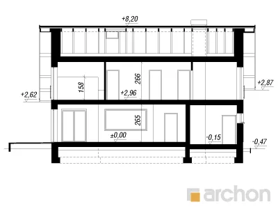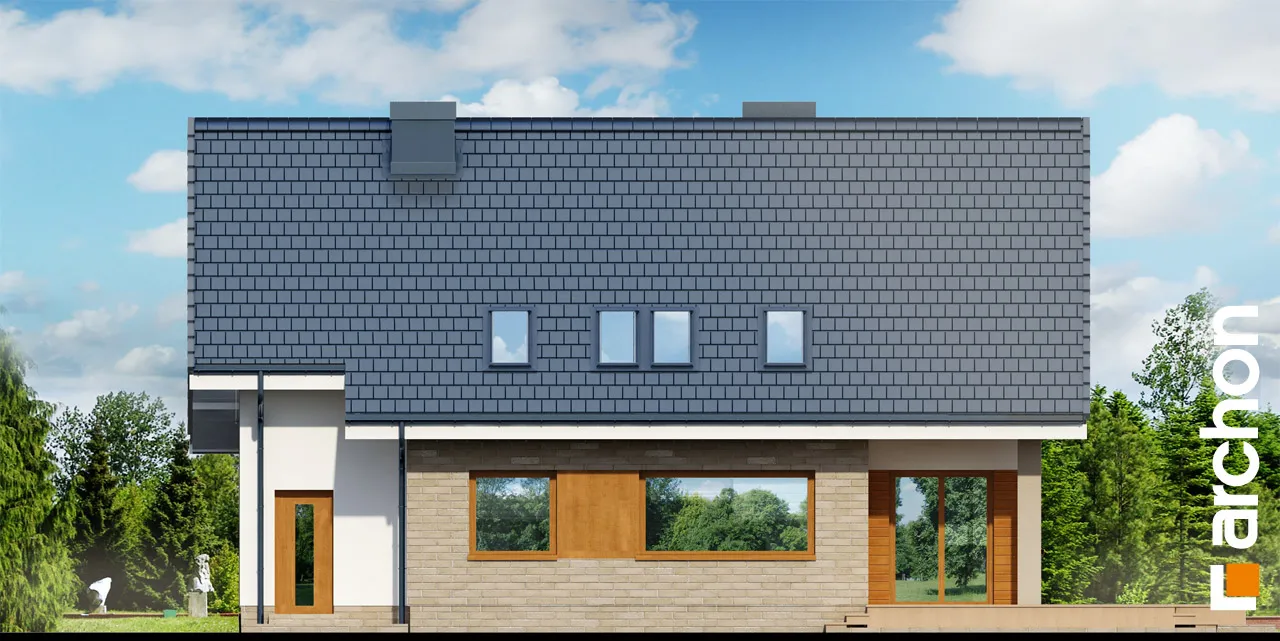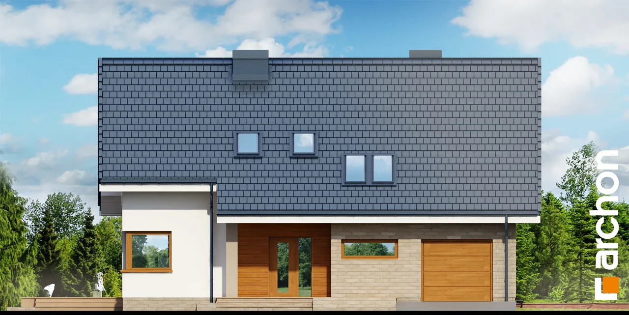 Дом классических пропорций в современном исполнении, притягивающий взгляд веселой игрой цветов облицовки и ритмом остекления. Крытый вход ведет нас в дом: через светлый вестибюль со встроенным шкафом, а затем прямо в прекрасно освещенную гостиную. Это открытое пространство, где гостиная и кухня разделены столом, расположенным у большой застекленной зоны, которая объединяет это пространство с садом. Из гостиной мы выходим на частично крытую террасу, где удобная, полностью защищенная зона предназначена для обедов, встреч и отдыха. Из прихожей есть кабинет с видом на сад, ванная комната с душем и отдельная хозяйственная зона здания - гараж, котельная и подсобное помещение. Незаметно расположенная лестница ведет в мансарду, которая представляет собой приватную зону членов семьи. Функциональная планировка этого этажа позволяет отделить пространство для отдыха родителей от двухкомнатного царства детей. В светлой, просторной спальне родителей есть две удобные гардеробные. Обе части соединены большой ванной комнатой с душем и прачечной, доступной из широкого холла.