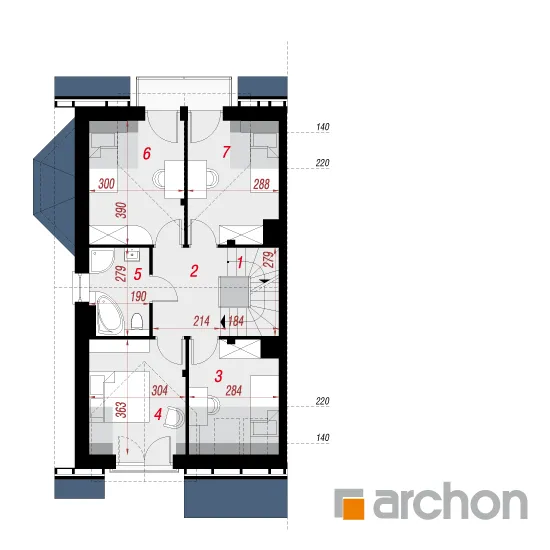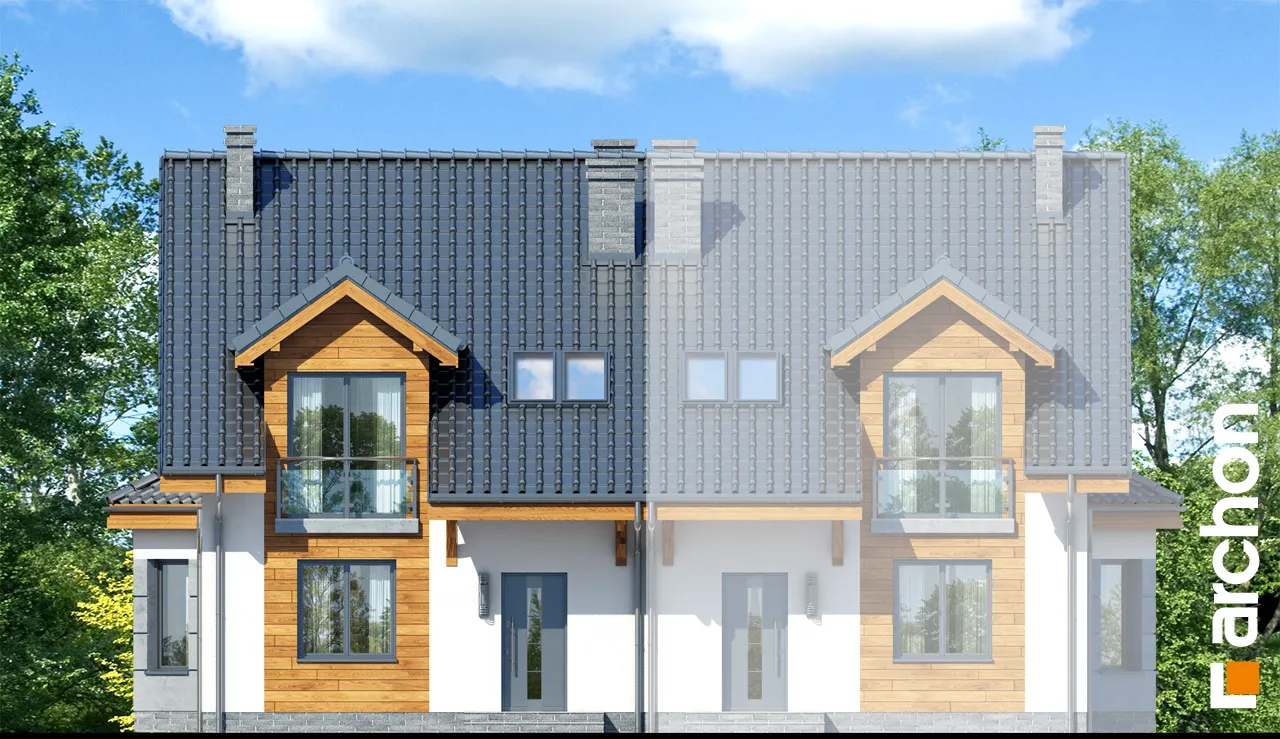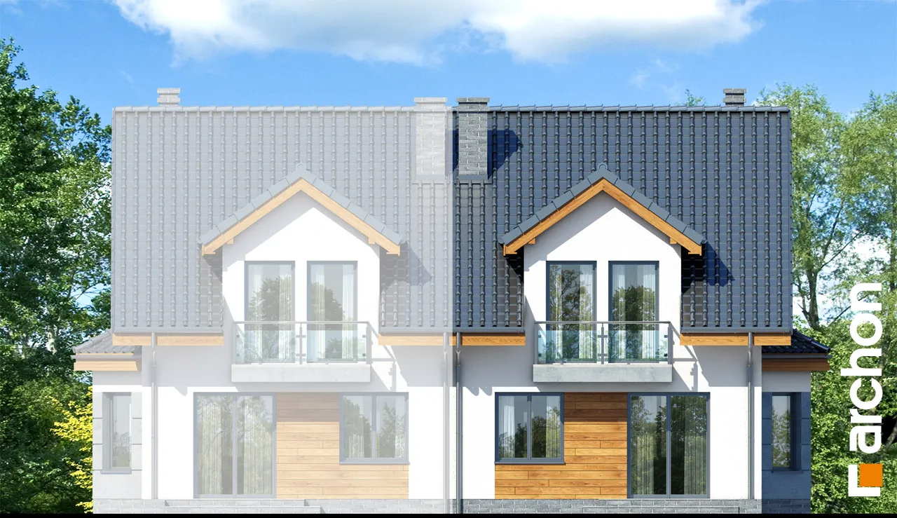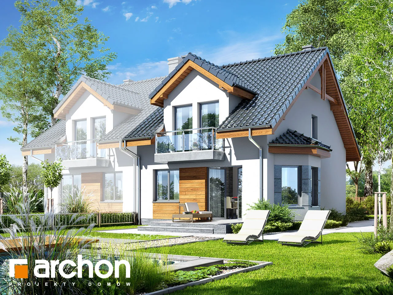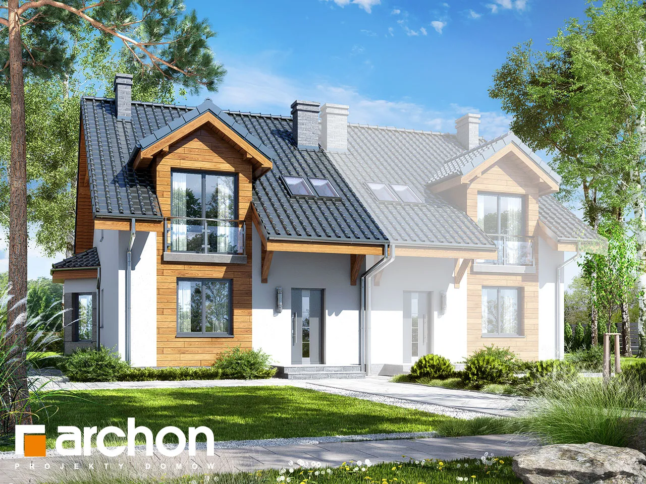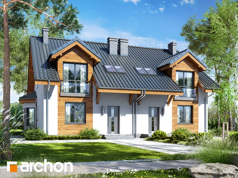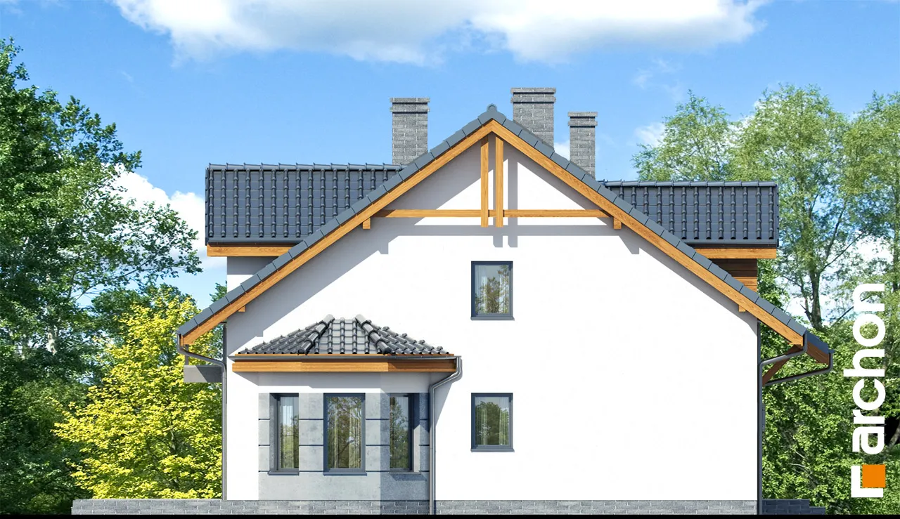Чрезвычайно функциональный дом, предназначенный для узких участков. Программа дома была решена на двух этажах. Вход под крышей через тамбур с гардеробом ведет в холл. Прямо рядом со входом есть комната, которую можно использовать как кабинет, библиотеку или комнату для гостей. Далее открывается вид на дневную зону, кухню, широко открытую для гостиной углового камина. Это важный декоративный элемент интерьера, а также благодаря своему удачному расположению излучаемое тепло согревает все открытое пространство на первом этаже, стимулируя совместное проведение времени и отдыха. Большое окно и двойные двери соединяют гостиную с садовой террасой. Программа первого этажа укомплектована туалетом и лестницей, ведущей наверх. На мансарде есть удобная спальня с двуспальной кроватью для родителей, три комнаты для детей и функциональная ванная комната с душем и ванной. Очень эффективное использование поверхности отражается в компактной и простой структуре здания, а большие поверхности остекления на обоих этажах делают дом солнечным и теплым.