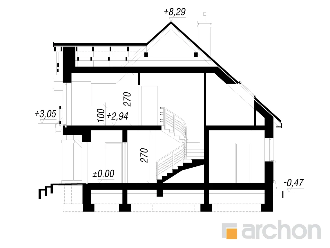 - Разрезы со всеми размерами (высоты этажей, кровли и др.)