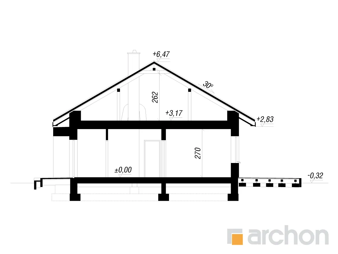 - Разрезы со всеми размерами (высоты этажей, кровли и др.)