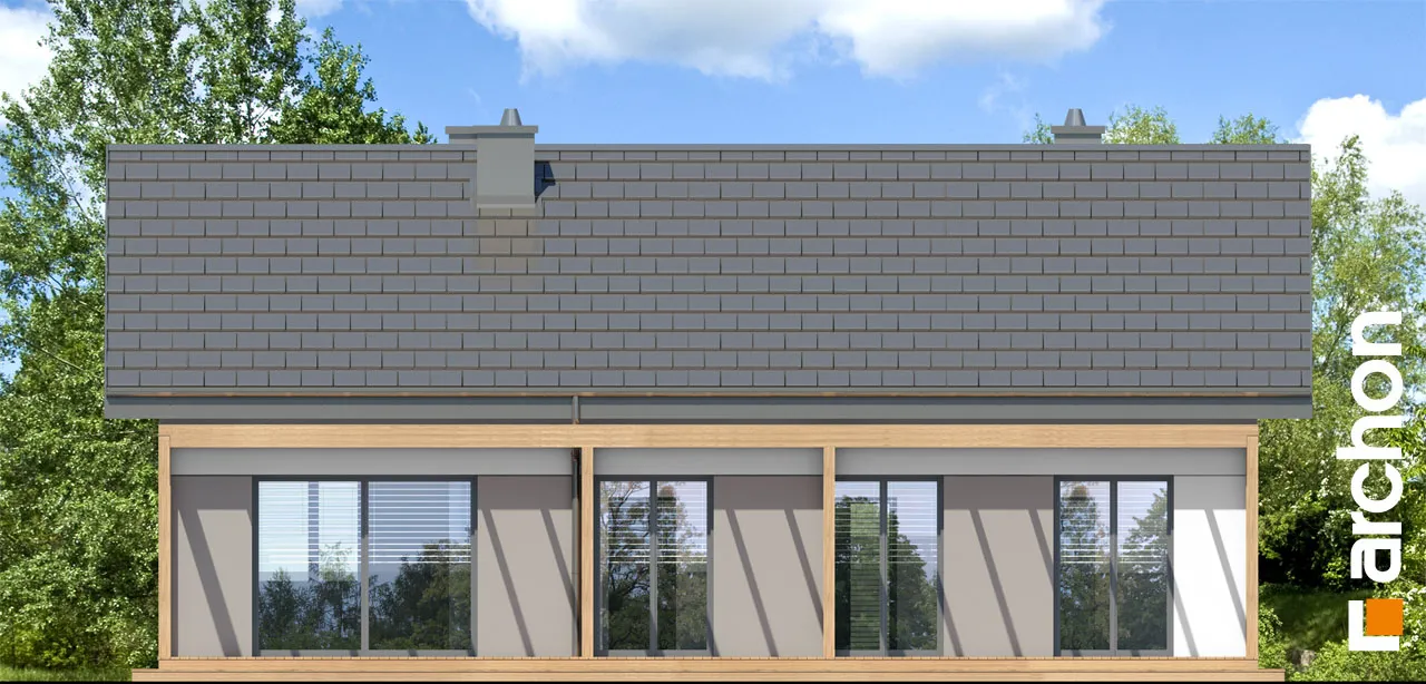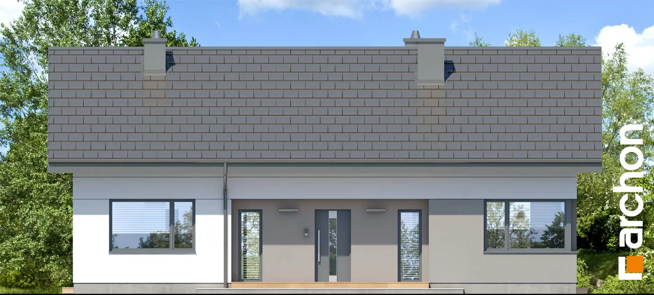 Небольшой одноэтажный дом из семейства "Дома в овсянницах". Это простой, современно отделанный дом, характер которого подчеркивают штукатурка модных цветов, остекление и деревянная пергола над террасой. Скатная крыша покрыта плоской черепицей антрацитового цвета. Пространственные решения, использованные в интерьере, и четкое разделение на зоны дневного и ночного использования обеспечивают максимальный комфорт для жителей. Тщательно продуманное остекление обеспечивает интерьер большим количеством естественного света. Комфортабельное жилое пространство включает гостиную с камином, столовую с видом на сад и просторную кухню. Его преимуществом является возможность установки высоких встроенных шкафов, удобных столешниц и кладовой. Рядом с вестибюлем спроектирован туалет. Три из четырех частных спален имеют прямой выход в сад. Это идеальные комнаты для детей, в которых достаточно места для удобных кроватей, письменных столов, а также шкафов. Спальня родителей расположена на другой стороне коридора, а программу ночной зоны дома завершает ванная комната с естественным освещением. Газовая котельная, предусмотренная в проекте "Дом в овсянницах 5 (А)", служит также прачечной. Представленный проект относится к коллекции: проекты одноэтажных домов, проекты современных домов, проекты недорогих домов и проекты небольших домов.
