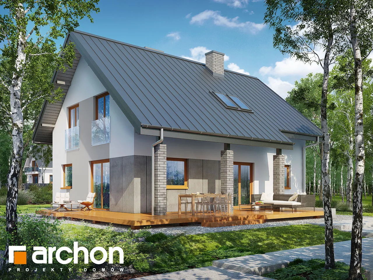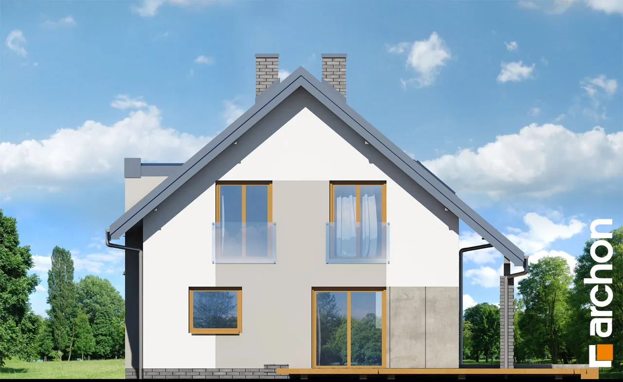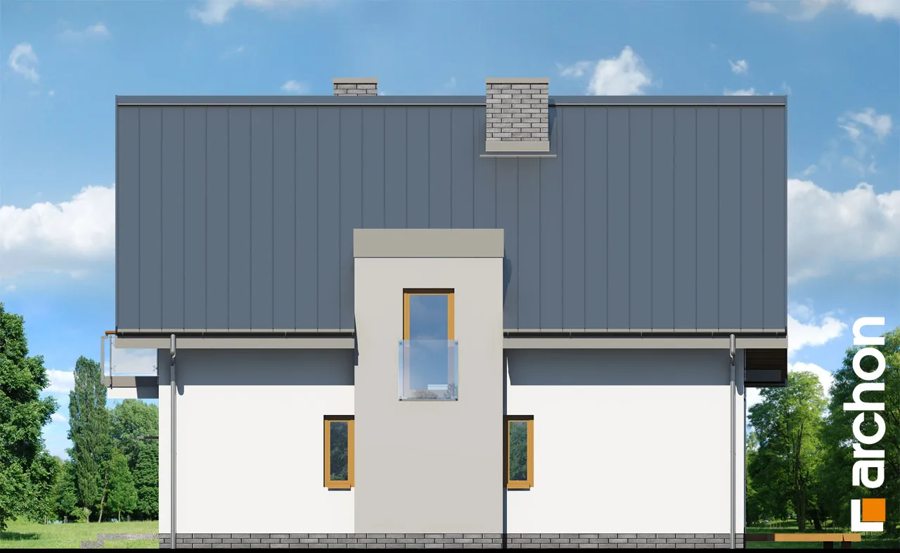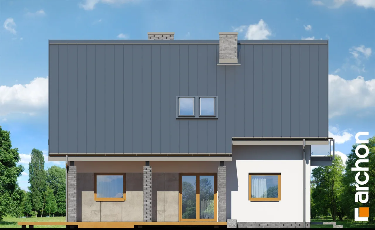 Привлекательный проект дома, простая форма которого и примененные архитектурные решения значительно снижают затраты на строительство и последующую эксплуатацию здания. Современная отделка фасада основана на стильном сочетании светлой штукатурки, темной облицовки и стеклянных балюстрад. Просторная терраса эффектно расширяет зону отдыха в гостиной, а ее крытая площадь позволяет отдыхать на свежем воздухе в любую погоду. Многочисленные остекления красиво освещают интерьер дома и плавно соединяют его с окружающим садом. Расположенный по центру главный вход вводит нас в вестибюль, который соединяется с вместительной гардеробной. Далее мы переходим в гостиную, в которой ежедневно отдыхают все обитатели дома и их гости. В просторной гостиной удобно разместились кресла перед камином и телевизором, а также большой семейный стол, который можно свободно раздвинуть для проведения праздников и других торжеств. Антресоль над обеденной зоной - эффективное пространственное решение, которое добавляет простора интерьеру и соединяет жилую зону с лофтом. Преимуществом открытой кухни является оптимальное количество рабочих поверхностей и мест для хранения, а также естественное освещение за счет двух окон. Из гостиной можно попасть в дополнительную комнату, которая идеально подходит для кабинета или домашней библиотеки, а также может служить спальней для гостей благодаря расположенной рядом ванной комнате с душем. Программа первого этажа дополнена котельной, соединенной с прачечной. Двойная лестница с естественным освещением ведет в удобную спальную зону в мансарде. Здесь были спроектированы три хорошо расположенные спальни и ванная комната с угловой ванной, душем и двумя умывальниками. Благодаря использованию больших балконных дверей все комнаты очень хорошо освещены, есть место для вместительных стенных шкафов, письменных столов и книжных шкафов. Антресольный этаж в прихожей открывает вид на столовую. Этот исключительный проект дома относится к популярным категориям: проекты небольших домов, проекты современных домов, для узкого участка, недорогой в строительстве и с дополнительным кабинетом на первом этаже.