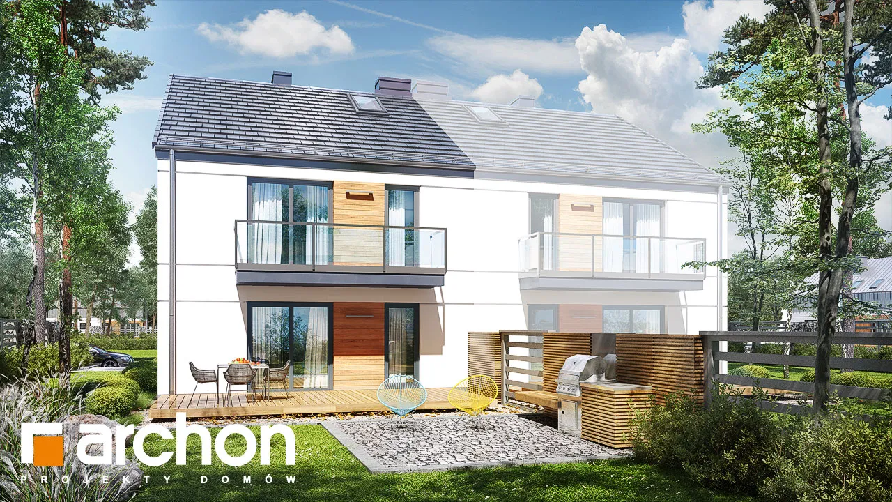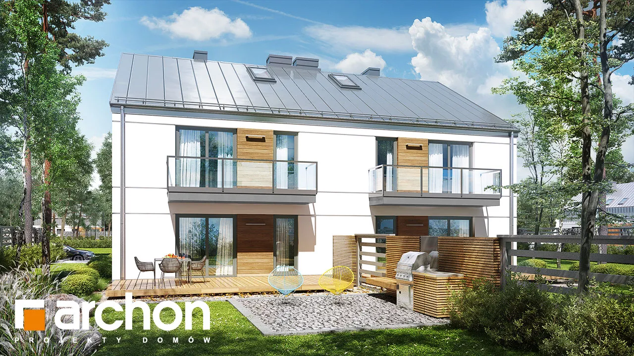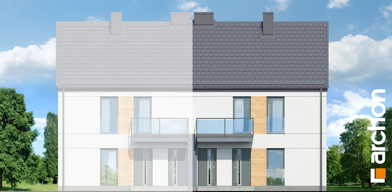 Проекты твинхаусов - это экономичное решение, которое завоевывает все больший интерес среди инвесторов. "Дом в фиалках 2 (Р2Б)" - это интересное предложение проекта современного двухквартирного дома, которое дает возможность реализовать его на узких участках. Он рекомендуется как индивидуальным клиентам, так и застройщикам, которые ищут двухквартирные дома с функциональными внутренними решениями и впечатляющим обликом. Современный вид здания подчеркивается способом его отделки с использованием натуральной облицовки, а также типом кровли. Двускатная крыша без карнизов придает зданию интересный, минималистский вид. На отдельных этажах спроектированы два независимых блока. Их внутреннее пространство спланировано очень рационально, а функциональная планировка обеспечивает комфортное использование. В жилой зоне обеих квартир спроектированы гостиная с обеденной зоной и хорошо организованная кухня. Ночная зона в квартире на первом этаже состоит из двух спален, а в квартире в мансарде есть дополнительная третья спальня. Завершает программу ванная комната. В проекте дома предусмотрено много места для установки вместительных шкафов. Мансардная квартира также включает в себя просторный чердак. Представленный "Дом в фиалках 2 (Р2Б)" расширяет коллекцию: проекты двухквартирных домов, проекты небольших домов, проекты современных домов и проекты домов с жилой мансардой.