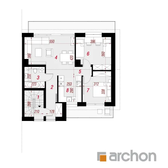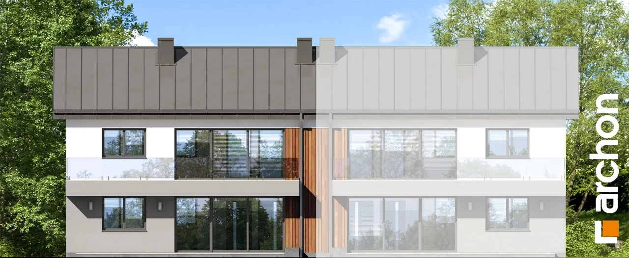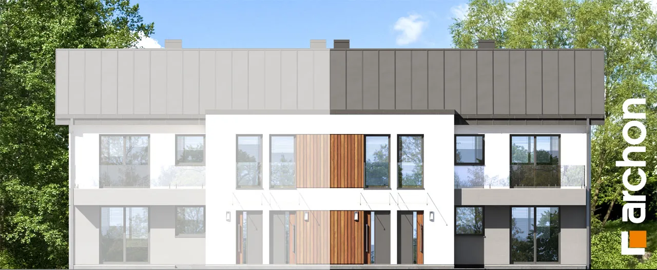 Это увеличенная версия проекта "Дом при сквере 3 (Р2Б)". Возможно объединение проектов "Дом при сквере 3 (Р2Б)" и "Дом при сквере 3 (Р2БА)" в двухквартирный дом. Проект может быть реализован на земле, зонированной под односемейное жилье. Здание имеет современный внешний вид, привлекательность ему придают натуральная облицовка и стеклянные балюстрады. Двускатная крыша покрыта металлическими листами. Два жилых блока в здании имеют аналогичную программу хозяйственных нужд, но немного отличаются по размеру - больший находится на втором этаже. Жилая площадь каждой квартиры состоит из прекрасно освещенной гостиной, выходящей на террасу или балкон, столовой, хорошо оборудованной кухни с просторными столешницами и ванной комнаты. Отдельные комнаты включают спальню для двух детей с удобными кроватями и письменными столами, а также комнату для родителей. Вместительные шкафы, расположенные в комнатах и прихожей, обеспечивают достаточное пространство для хранения одежды. "Дом при сквере 3 (Р2БА)" относится к категории: проекты готовых домов, проекты домов для застройщиков, проекты двухэтажных домов, проекты домов для узкого участка, проекты двухквартирных домов.