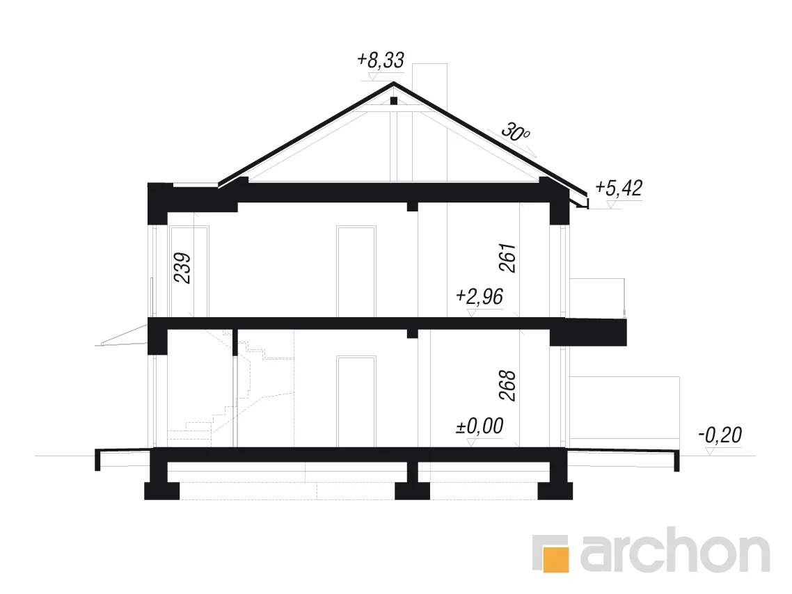 - Разрезы со всеми размерами (высоты этажей, кровли и др.)