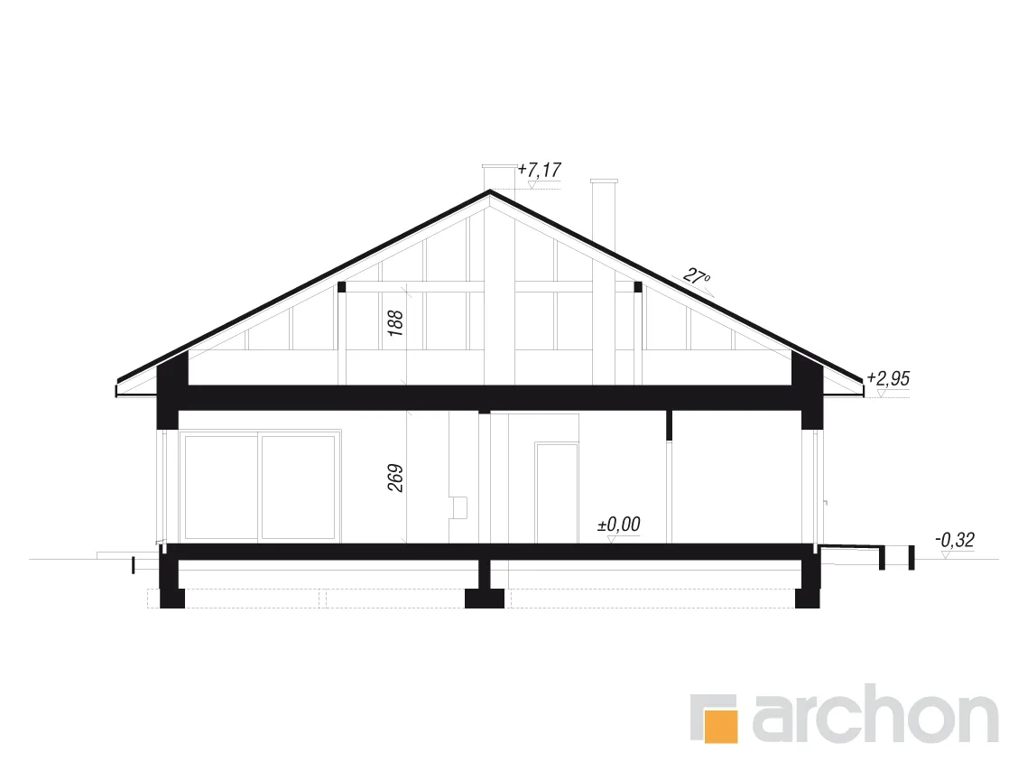 - Разрезы со всеми размерами (высоты этажей, кровли и др.)