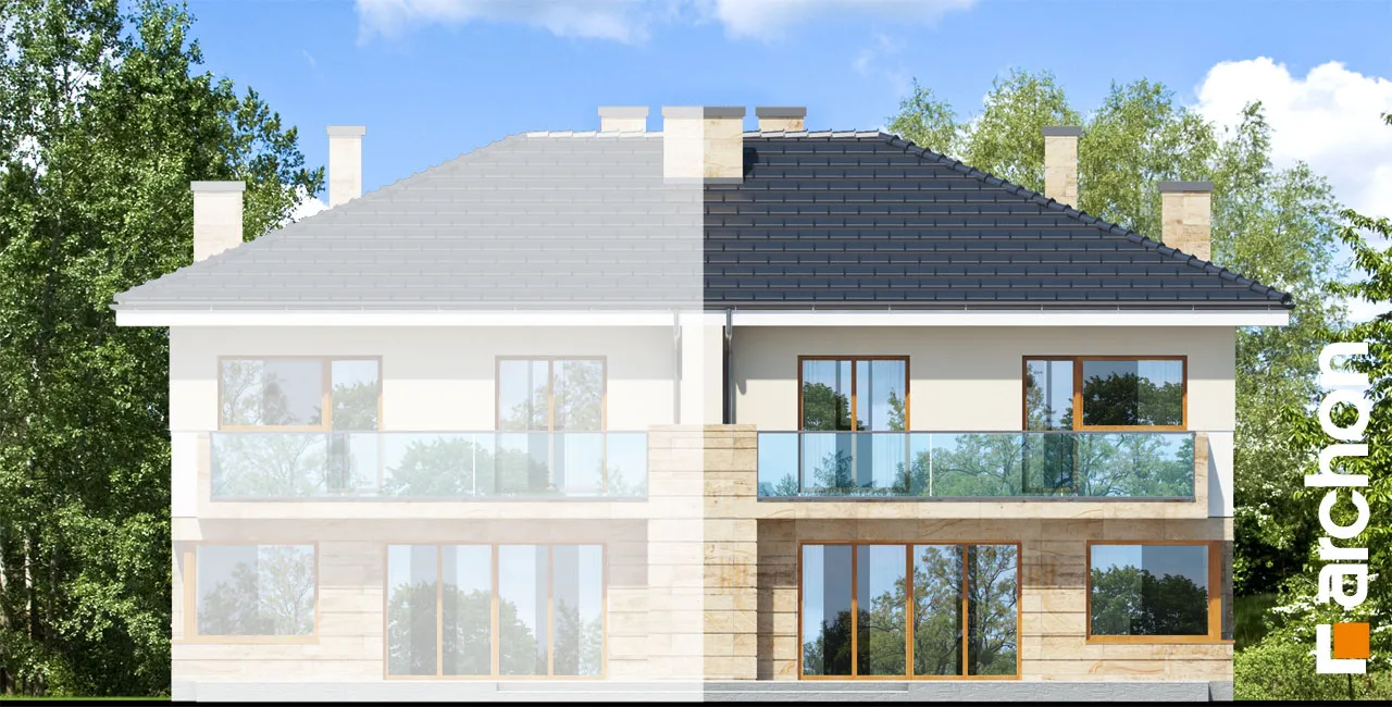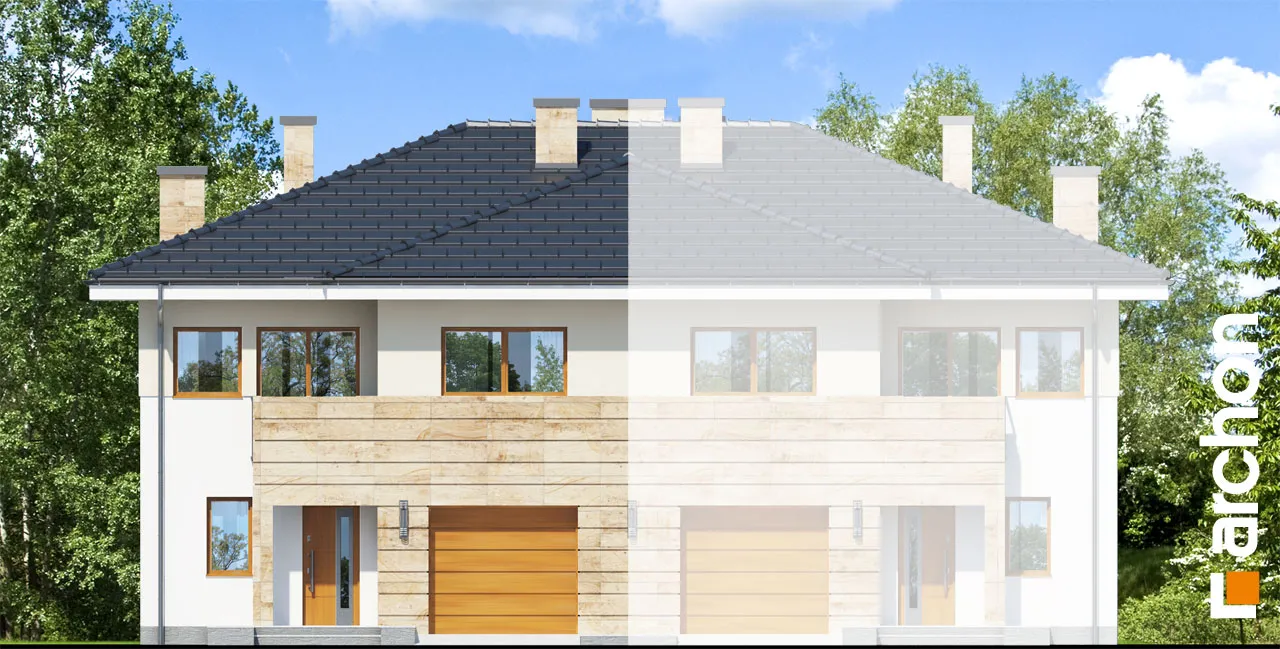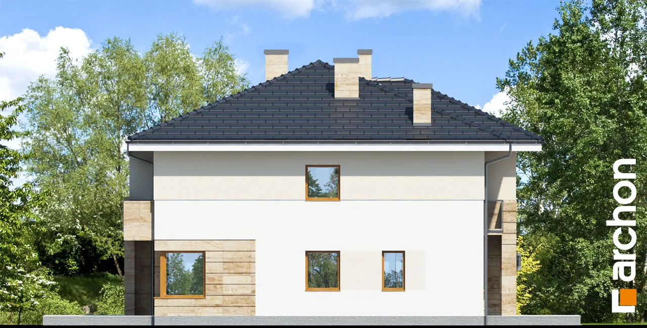 Современная двухэтажная вилла с привлекательным навесом над входом и большим остеклением, соединяющим дом с садом. Представительная гостиная четко разделена на зону отдыха перед домашним кинотеатром и камином и светлую столовую. На открытой кухне есть функциональная барная стойка. В хозяйственную зону - гараж и котельную с функцией прачечной - можно попасть из тамбура. Преимуществом ночной зоны, расположенной на первом этаже дома, является полная высота этажа и освещение через вертикальные окна. Здесь были спроектированы четыре светлые и обустроенные спальни, ванная комната и гардероб. Этот проект относится к коллекции: проекты двухэтажных домов, проекты домов для узкого участка и проекты современных домов.