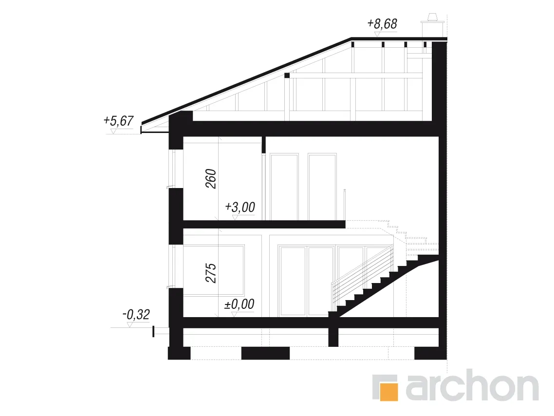 - Разрезы со всеми размерами (высоты этажей, кровли и др.)