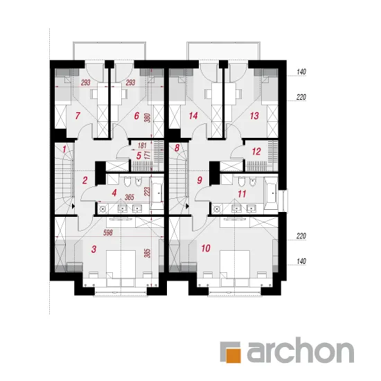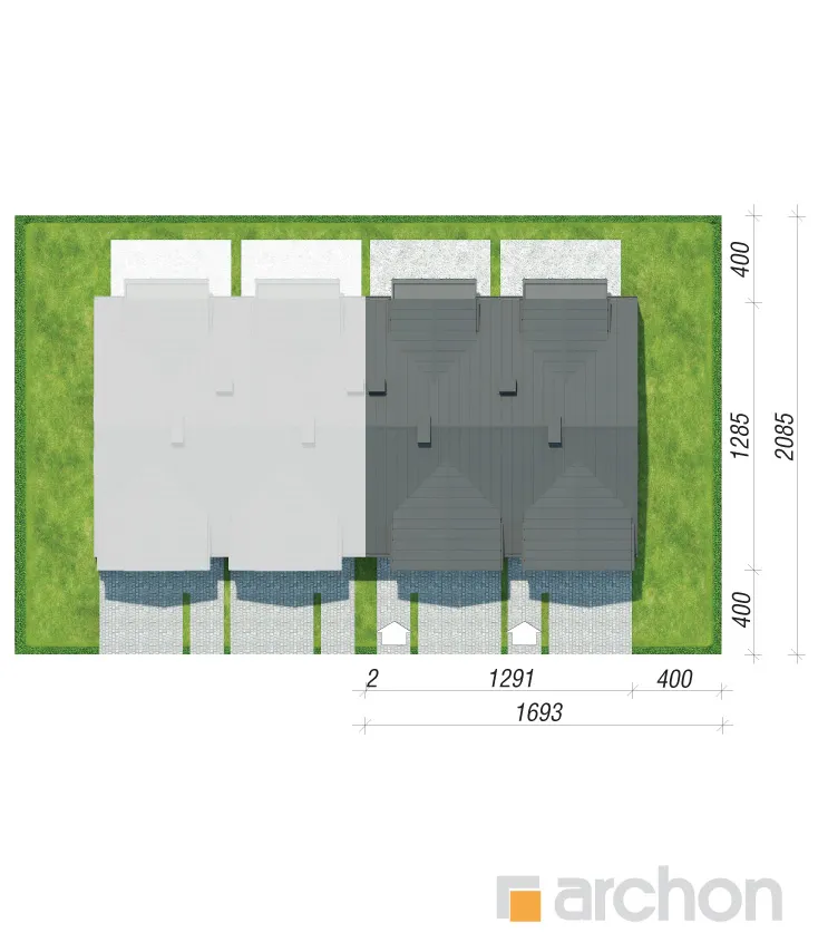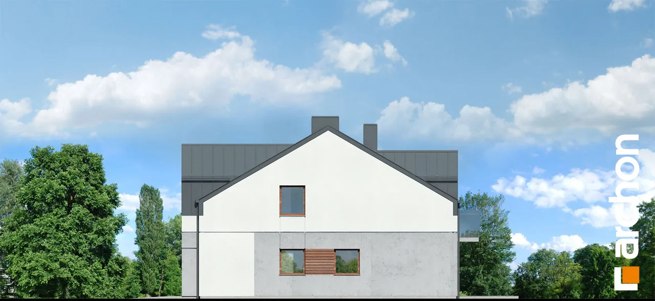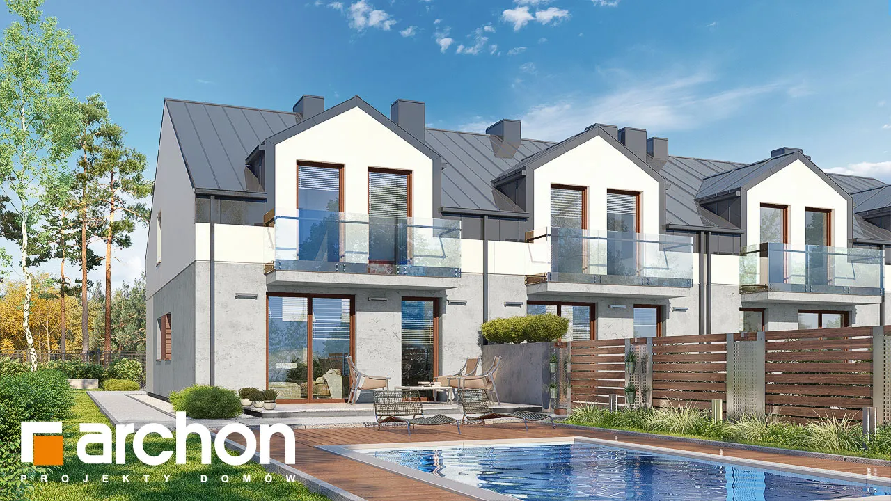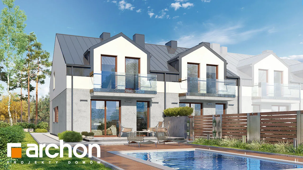 Проект современного двухквартирного дома, который расширяет популярное семейство "Домов под Гинко". Интересная композиция фасада, основанная на сочетании светлой штукатурки и фактурной бетонной облицовки, обеспечивает привлекательный внешний вид в соответствии с современными тенденциями. Здание венчает двускатная крыша, которую разнообразят большие мансардные окна, обеспечивающие больше пространства в мансарде. Каждый сегмент спроектирован с одним гаражом, который отделен от жилой части тамбуром. Функционально продуманный интерьер гарантирует комфортное использование для жильцов. Жилая зона на первом этаже спроектирована как открытое пространство с выходом на террасу. В доме есть уютная гостиная с камином, столовая с местом для хранения посуды и светлая и просторная кухня с вместительной рабочей поверхностью для приготовления пищи. Ванная комната с душем находится рядом с вестибюлем. Тихая ночная зона расположена в мансарде и представляет собой комфортное пространство для уединенного отдыха. Большая спальня родителей и две детские комнаты расположены по разные стороны коридора, удобная ванная комната находится на оси лестницы, а функциональную программу мансарды дополняет гардеробная, общая для всех членов семьи. Проект дома "Дом под гинко 23 (ГР2Б)" относится к категории: проекты двухквартирных домов, проекты современных домов, проекты домов для сблокированной застройки, проекты домов для застройщиков.
