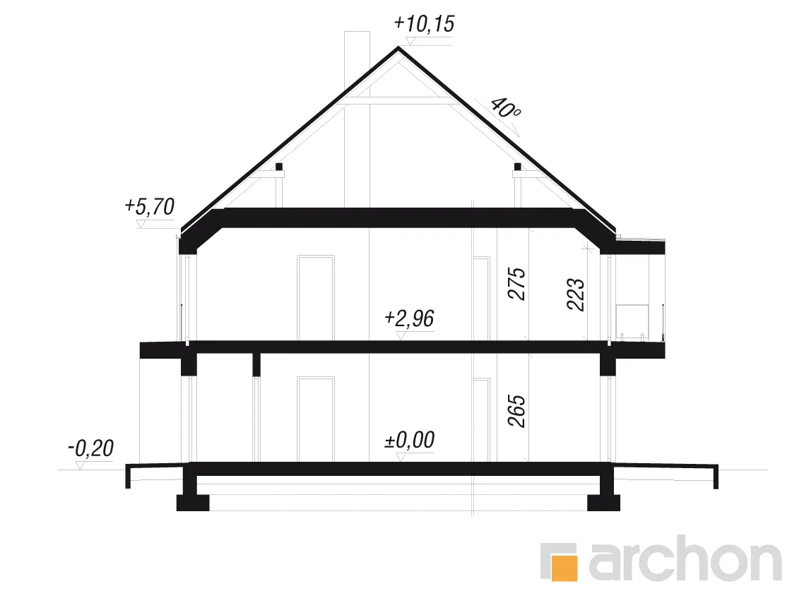- Разрезы со всеми размерами (высоты этажей, кровли и др.)