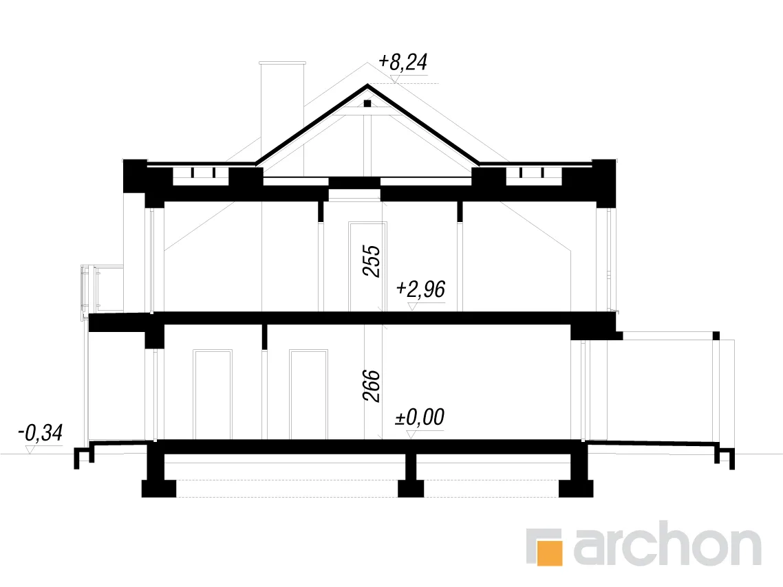 - Разрезы со всеми размерами (высоты этажей, кровли и др.)