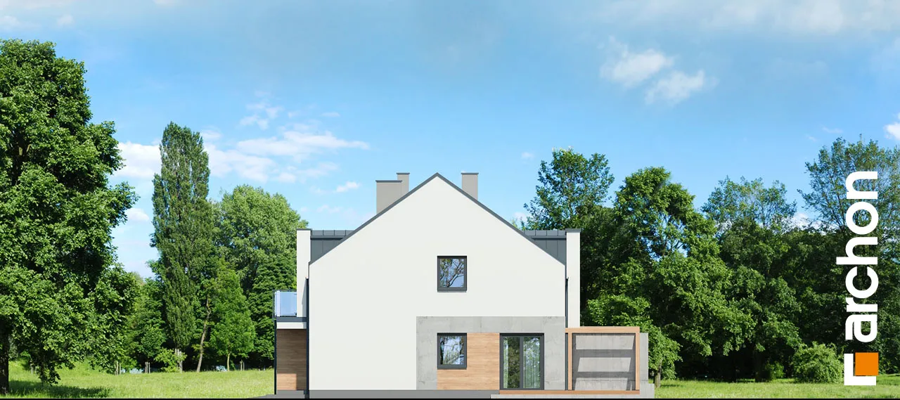 Современный проект дома. Отличаясь впечатляющей композицией фасадов, их отделка основана на сочетании штукатурки с деревянной облицовкой. Современный характер подчеркивают мансардные окна интересной формы и крыша без карниза. Широкий балкон на фасаде дома увеличивает пространство для отдыха жильцов и создает навес над входом. Программа внутренних помещений была разработана в соответствии с естественным разделением, расположив жилую и ночную зоны на отдельных этажах. Функциональная планировка первого этажа предлагает просторную гостиную, свободно объединенную со столовой. Широкое остекление привлекательно освещает интерьер естественным светом и открывает его на террасу, что способствует семейному отдыху. В столовой можно разместить шкафы для столовых сервизов и столовых приборов. Кухонное пространство в жилой зоне условно обозначено длинной столешницей. В ванную комнату с душем можно попасть из прихожей, а из тамбура есть прямой доступ к гаражу и котельной. Прямоугольные мансардные окна, спроектированные в мансарде, увеличивают пространство ночной зоны и вместе с высокой коленной стеной повышают уровень комфорта. Ванная комната спроектирована по оси лестницы. Представленный проект рекомендуется как для частных инвесторов, так и для девелоперов.