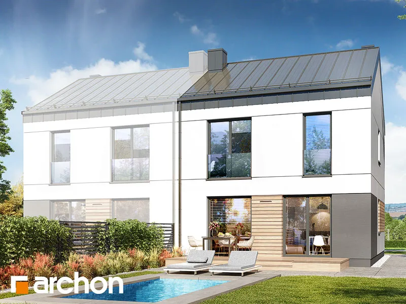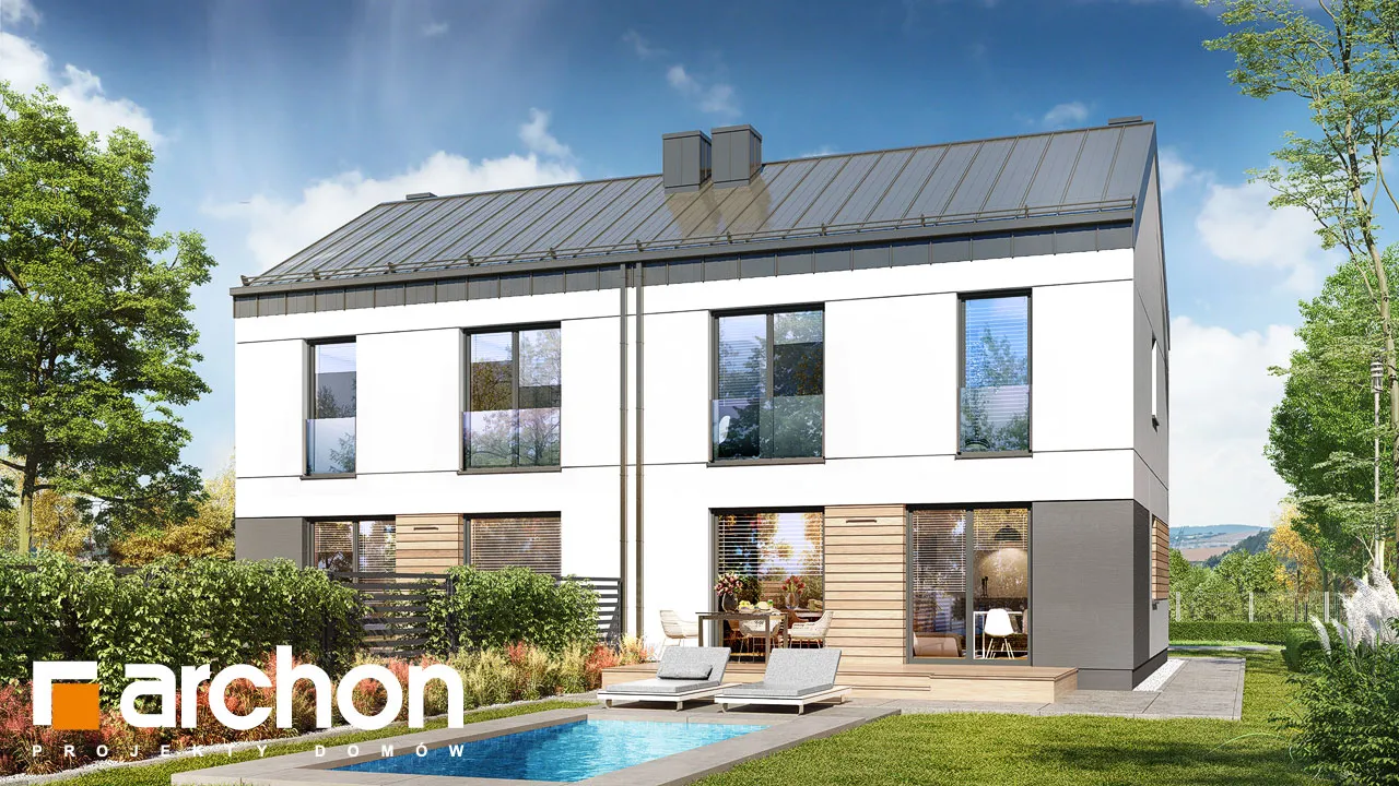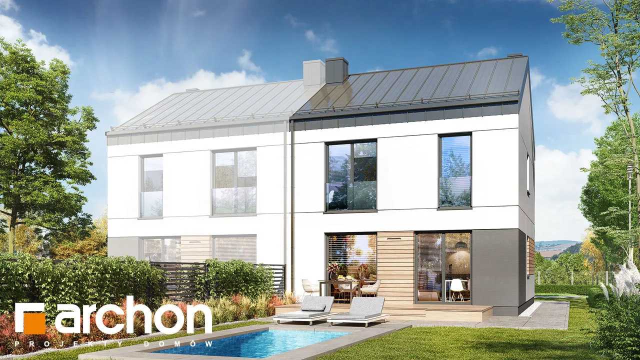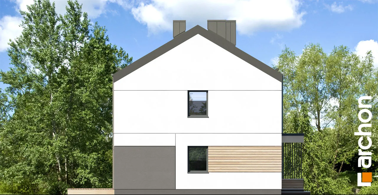 "Дом в аркадиях 4 (Б)" - это проект дома для сблокированной застройки. Простой корпус дома подчеркивается минималистичным и элегантным фасадом. Светлая штукатурка в сочетании с деревянной облицовкой, подчеркивающая главный вход и линию окон, обеспечивает привлекательный, современный внешний вид. Характерным элементом проекта является крыша без карнизов, покрытая металлическими листами, антрацитовый цвет которых красиво контрастирует со штукатуркой. Входная зона практично покрыта интересной плоской формой кровли. Первый этаж дома представляет собой комфортную жилую зону с большими остеклениями, которые естественным образом освещают пространство. Гостиная с удобным угловым диваном и камином, расположенным рядом с ТВ-зоной, плавно сливается со столовой. Столовая спроектирована с широким окном, позволяющим удобно выйти на террасу, что увеличивает пространство для отдыха в доме. Столовая примыкает к функциональной кухне, которая обеспечивает идеальные условия для работы благодаря большому количеству рабочих поверхностей и барной стойке. Функциональная программа первого этажа также включает комнату, которую можно использовать как офис с удобным письменным столом у окна. Ванная комната, расположенная по его оси, завершает дизайн первого этажа. Лестница ведет в мансарду. Высокая коленная стена, использованная в проекте мансарды, придает простор помещениям и облегчает их расположение. Ночная зона включает четыре прекрасно освещенные спальни с отдельной зоной для отдыха, работы и хранения вещей, а также естественно освещенную ванную комнату. "Дом в аркадиях 4 (Б)" принадлежит к коллекции: проекты домов в современном стиле, проекты одноэтажных домов, проекты домов для сблокированной застройки, проекты домов для застройщиков.