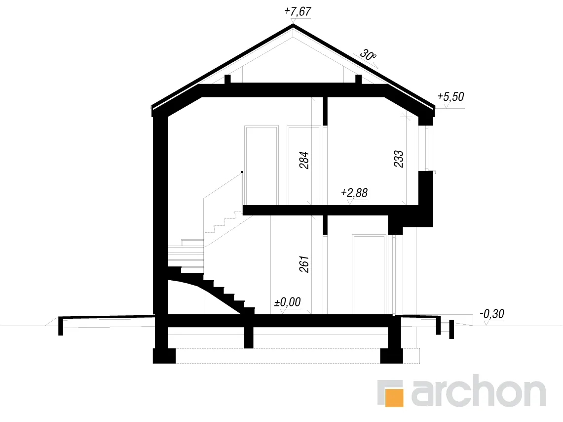 - Разрезы со всеми размерами (высоты этажей, кровли и др.)