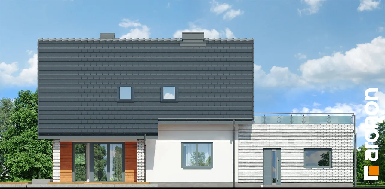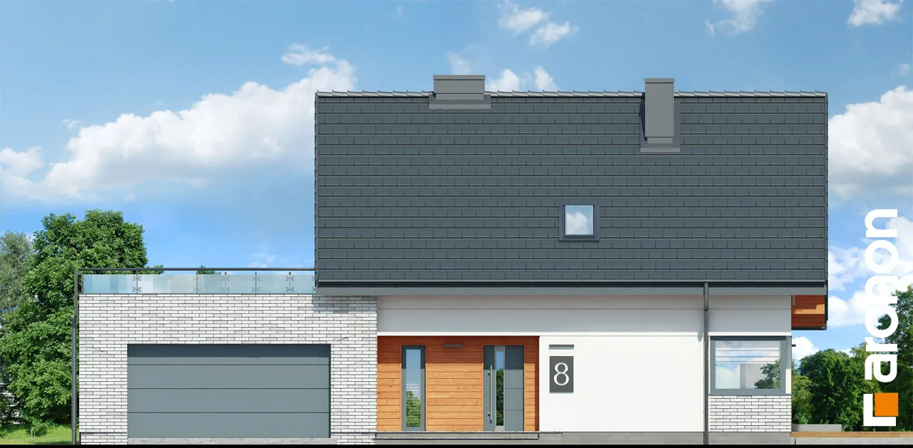 Элегантный проект дома с жилой мансардой, гаражом на две машины и подвалом, особенно рекомендуется для реализации на участках с уклоном. Интересная отделка возвышения придает современный вид простому корпусу дома. Деревянные и каменные облицовки, выставленные на фоне белой штукатурки, повышают эстетическую ценность дома. Через тамбур мы попадаем в открытую, прекрасно освещенную жилую зону, где гостиная соединена со столовой, а все пространство согревает атмосферный камин. Зона отдыха расширена за счет частично крытой террасы, где можно организовать кофейный уголок. В столовой можно накрыть большой семейный стол и поставить шкафы для столовой посуды. Просторная кухня прекрасно освещается угловым окном, к ее достоинствам относятся длинная рабочая поверхность и практичная организация функций, что обеспечит комфортную работу. Во второй части первого этажа спроектирована комната, которая вместе с прилегающей ванной комнатой является удобным местом для ночевки гостей. В тамбуре есть возможность увеличения пространства за счет спроектированного рядом гардероба, через который можно попасть в гараж на две машины и отдельное подсобное помещение. Удобно спроектированная мансарда имеет оптимальное расположение комнат, прекрасно освещенных естественным светом. Есть две комнаты для детей и спальня родителей, в которых также предусмотрено место для вместительных шкафов. Ванную комнату можно обустроить как банную, с богатой хозяйственной программой и выходом на большую террасу над гаражом. В мансарде также спроектирован гардероб. В подвале предусмотрена хозяйственная зона, а в ней прачечная, кладовая, котельная и большая комната, которую можно использовать как домашний спортзал. Представленный проект относится к категории: проекты домов с подвалом, современные проекты домов.