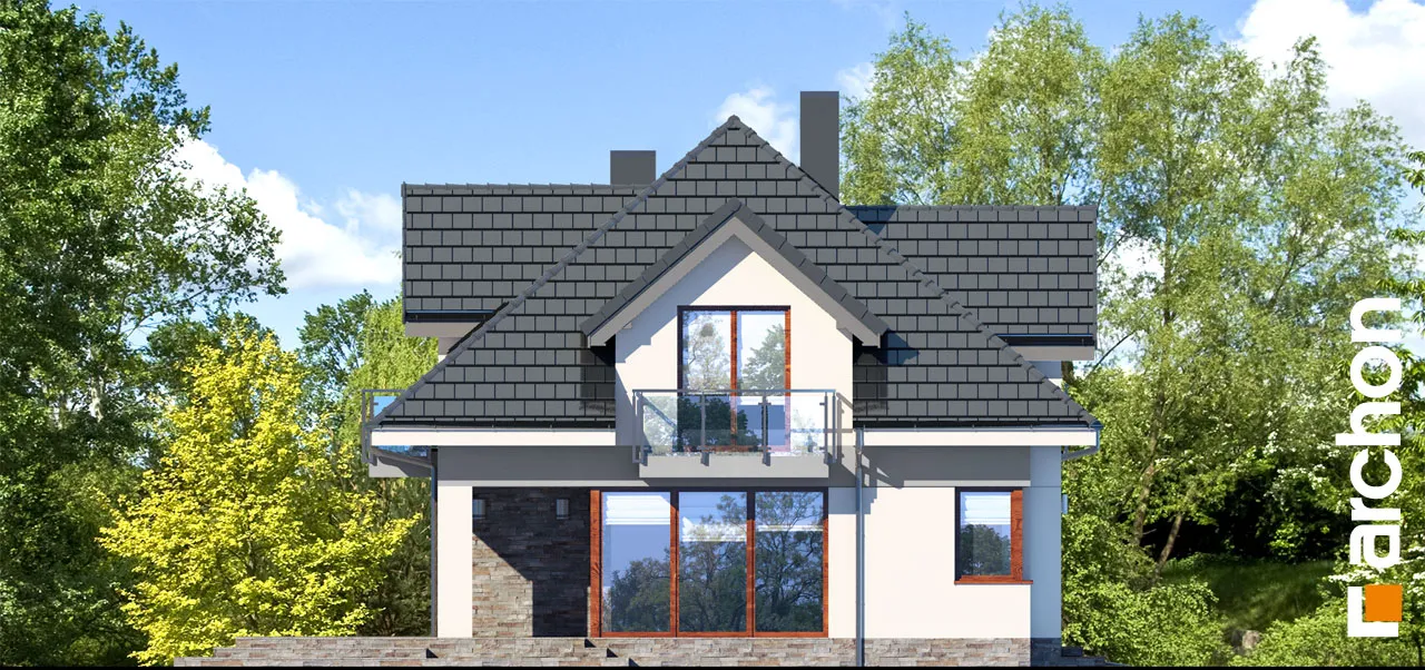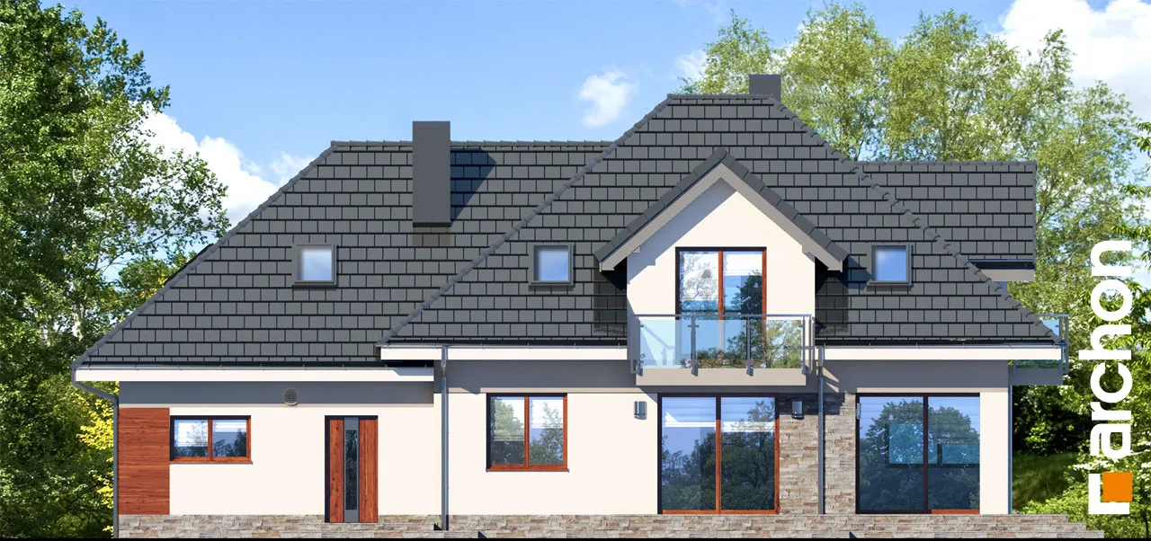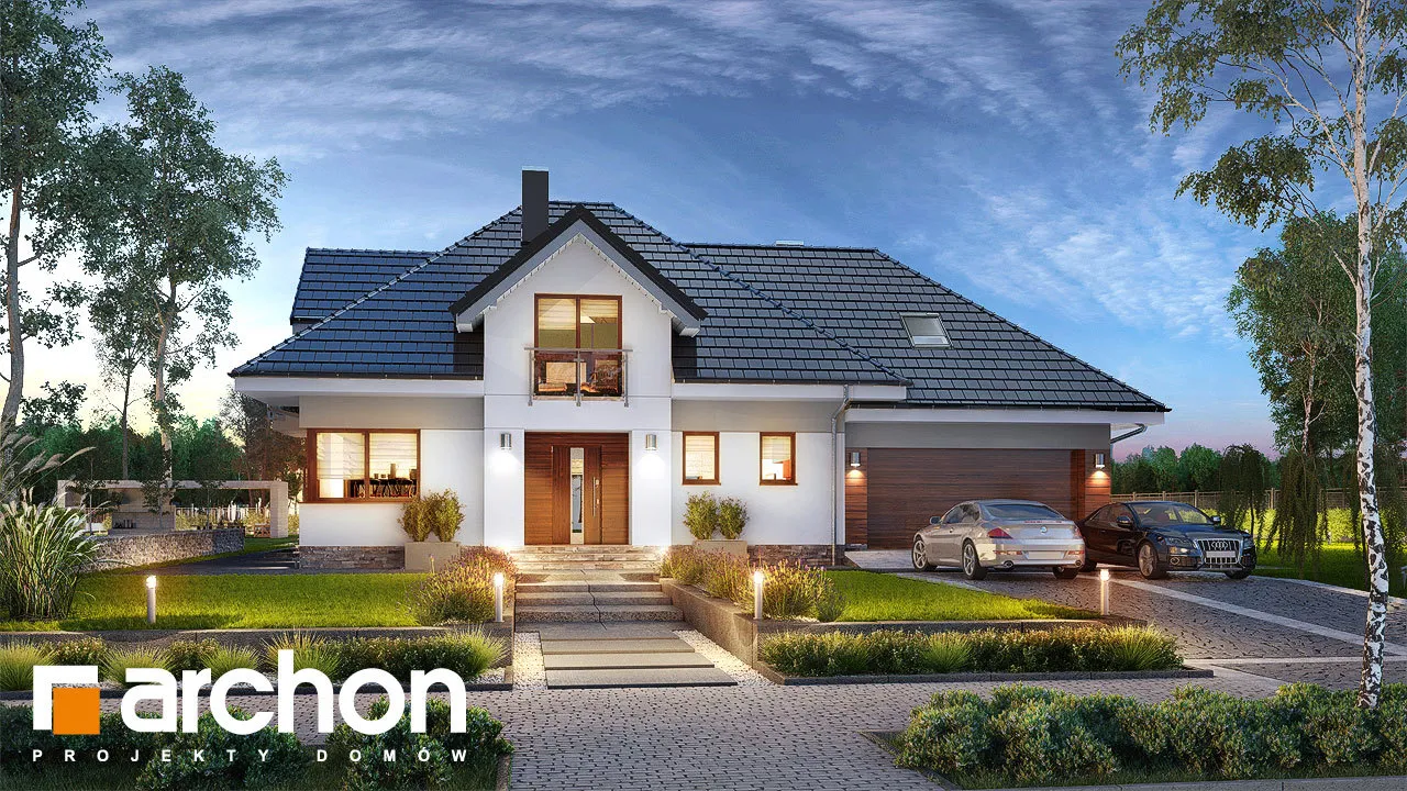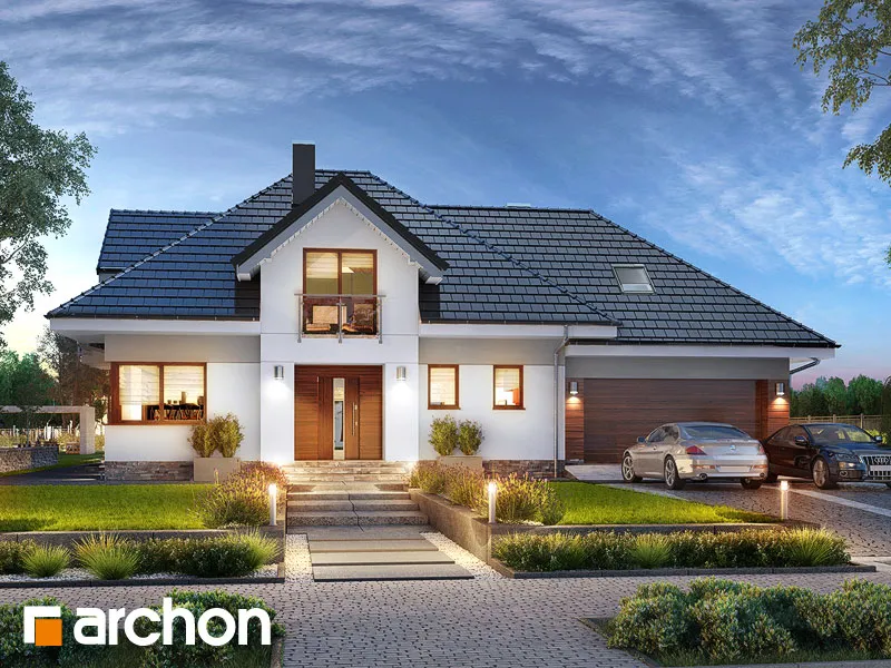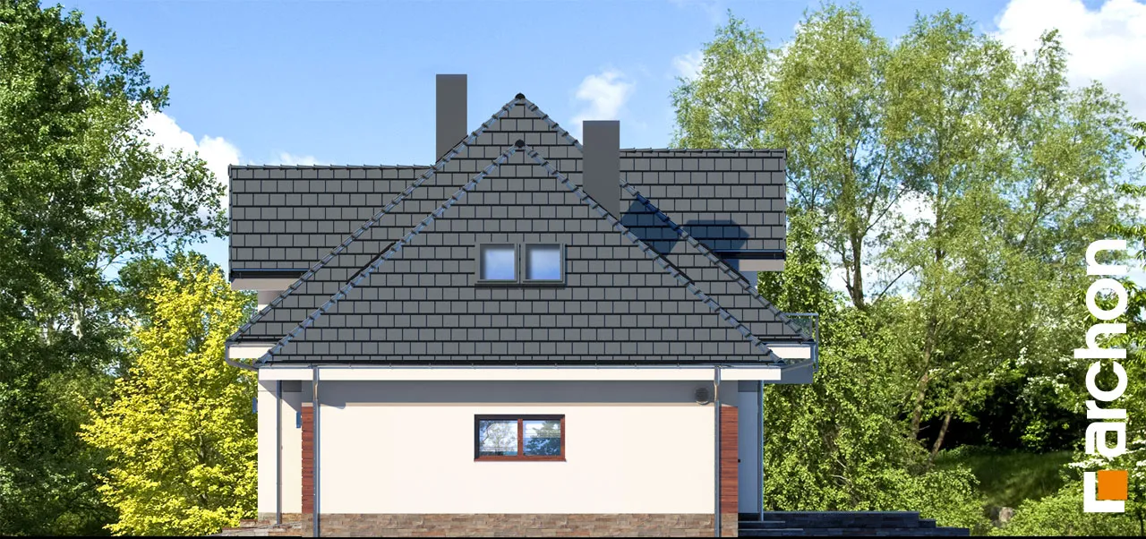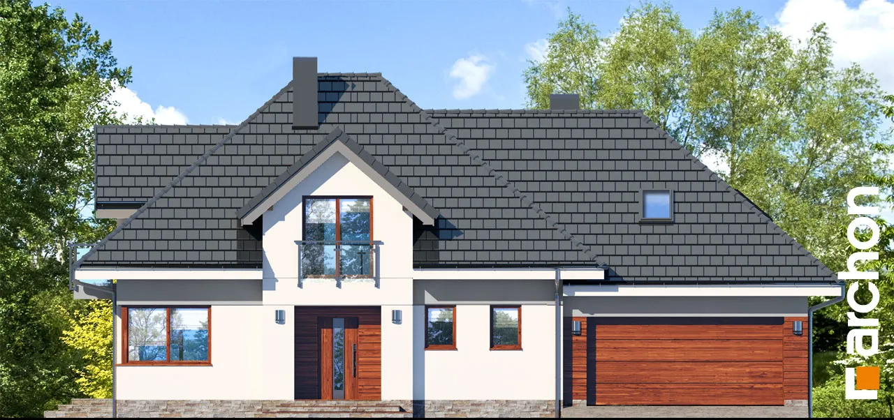 Внушительный дом, принадлежащий к коллекции проектов домов с жилой мансардой, с просторным интерьером и функциональной планировкой. В документации "Дом в сливах 2 (Г2Е)" есть проект механической вентиляции, который позволит снизить затраты на отопление дома. Спроектированная вентиляционная установка (рекуператор) обеспечивает эффективный обмен и циркуляцию воздуха в здании, тем самым обеспечивая комфорт его использования. Стильное оформление фасада подчеркивается светлой штукатуркой, натуральной облицовкой и легкими, застекленными балюстрадами. Шатровая крыша покрыта плоской черепицей, а дополнительные мансардные окна делают помещения в мансарде просторными и естественно освещенными. Открытая жилая зона первого этажа - это многофункциональное пространство, место совместного отдыха для жителей дома. Терраса, идеальное место для отдыха на свежем воздухе. Раздвижные двери террасы плавно соединяют дом с садом, а интерьер привлекательно наполнен естественным светом. Столовая размещена в застекленном углу, ее размеры позволяют накрывать большой стол во время семейных посиделок. Удобная кухня оснащена практичной барной стойкой для завтрака и дополнена прилегающей кладовой. Кроме того, под лестницей находится подсобное помещение с местом для морозильной камеры. Программу завершает кабинет, который также может служить гостевой комнатой благодаря расположенной рядом ванной комнате с душем. В большом гараже на две машины можно разместить спортивный инвентарь или садовые инструменты. Котельная имеет отдельный выход наружу. Удобная двойная лестница ведет в частную ночную зону в мансарде. Здесь спроектированы три комфортабельные спальни, две гардеробные и просторная ванная комната с угловой ванной и душем. Над гаражом находится просторный чердак, который можно приспособить под жилые или рекреационные цели. "Дом в сливах 2 (Г2Е)" принадлежит к коллекции: проекты современных домов, проекты небольших домов, проекты домов с офисом на первом этаже и проекты домов с механической вентиляцией.