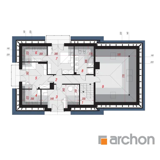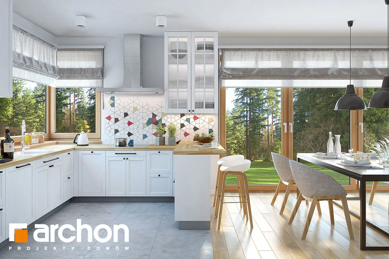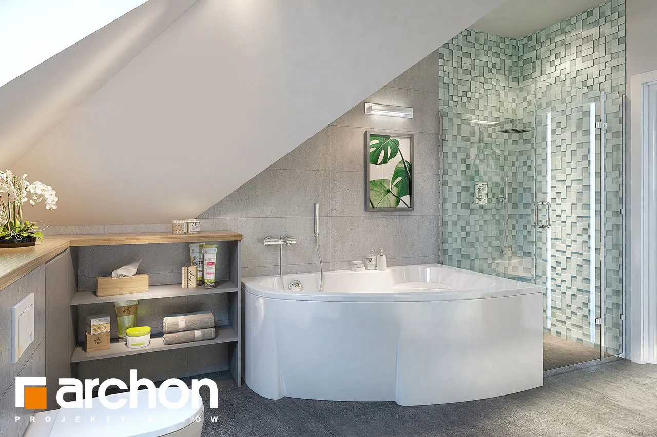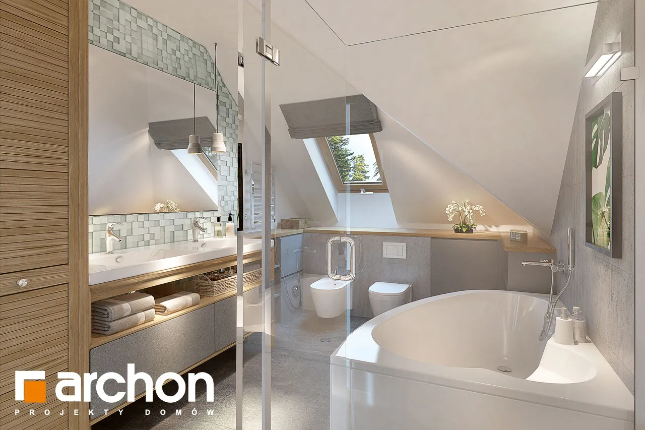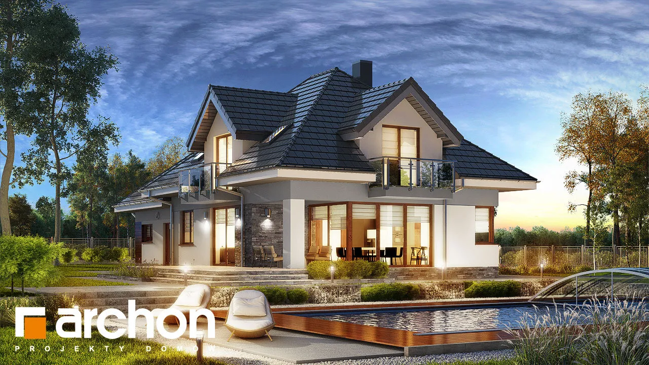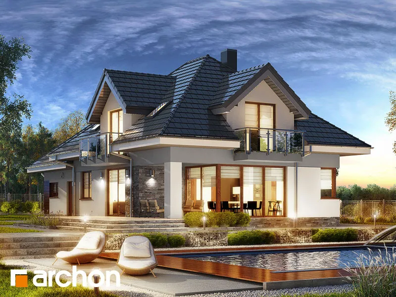 Внушительный дом, принадлежащий к коллекции проектов домов с жилой мансардой, с просторным интерьером и функциональной планировкой. В документации "Дом в сливах 2 (Г2Е)" есть проект механической вентиляции, который позволит снизить затраты на отопление дома. Спроектированная вентиляционная установка (рекуператор) обеспечивает эффективный обмен и циркуляцию воздуха в здании, тем самым обеспечивая комфорт его использования. Стильное оформление фасада подчеркивается светлой штукатуркой, натуральной облицовкой и легкими, застекленными балюстрадами. Шатровая крыша покрыта плоской черепицей, а дополнительные мансардные окна делают помещения в мансарде просторными и естественно освещенными. Открытая жилая зона первого этажа - это многофункциональное пространство, место совместного отдыха для жителей дома. Терраса, идеальное место для отдыха на свежем воздухе. Раздвижные двери террасы плавно соединяют дом с садом, а интерьер привлекательно наполнен естественным светом. Столовая размещена в застекленном углу, ее размеры позволяют накрывать большой стол во время семейных посиделок. Удобная кухня оснащена практичной барной стойкой для завтрака и дополнена прилегающей кладовой. Кроме того, под лестницей находится подсобное помещение с местом для морозильной камеры. Программу завершает кабинет, который также может служить гостевой комнатой благодаря расположенной рядом ванной комнате с душем. В большом гараже на две машины можно разместить спортивный инвентарь или садовые инструменты. Котельная имеет отдельный выход наружу. Удобная двойная лестница ведет в частную ночную зону в мансарде. Здесь спроектированы три комфортабельные спальни, две гардеробные и просторная ванная комната с угловой ванной и душем. Над гаражом находится просторный чердак, который можно приспособить под жилые или рекреационные цели. "Дом в сливах 2 (Г2Е)" принадлежит к коллекции: проекты современных домов, проекты небольших домов, проекты домов с офисом на первом этаже и проекты домов с механической вентиляцией.