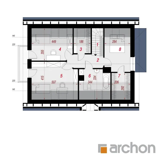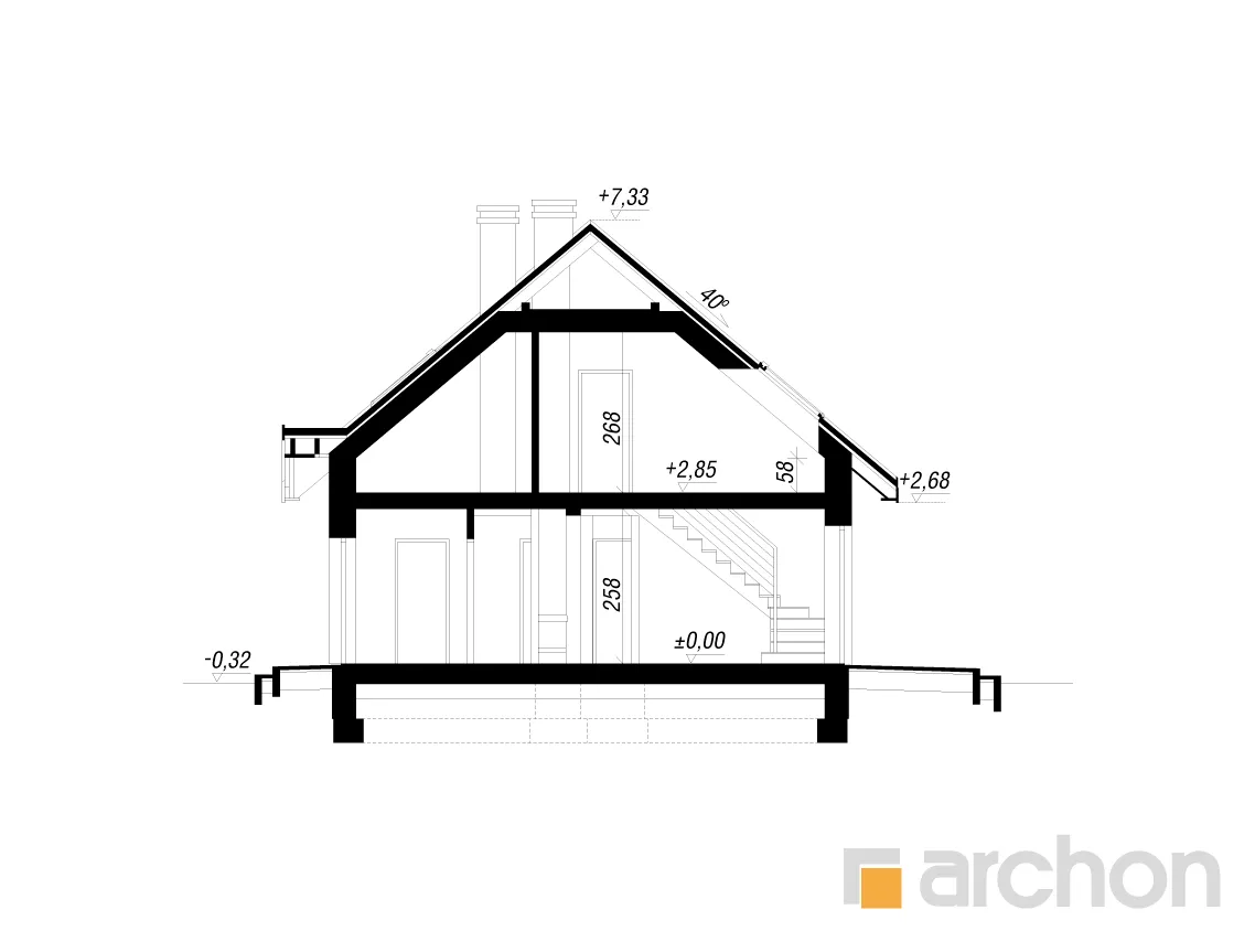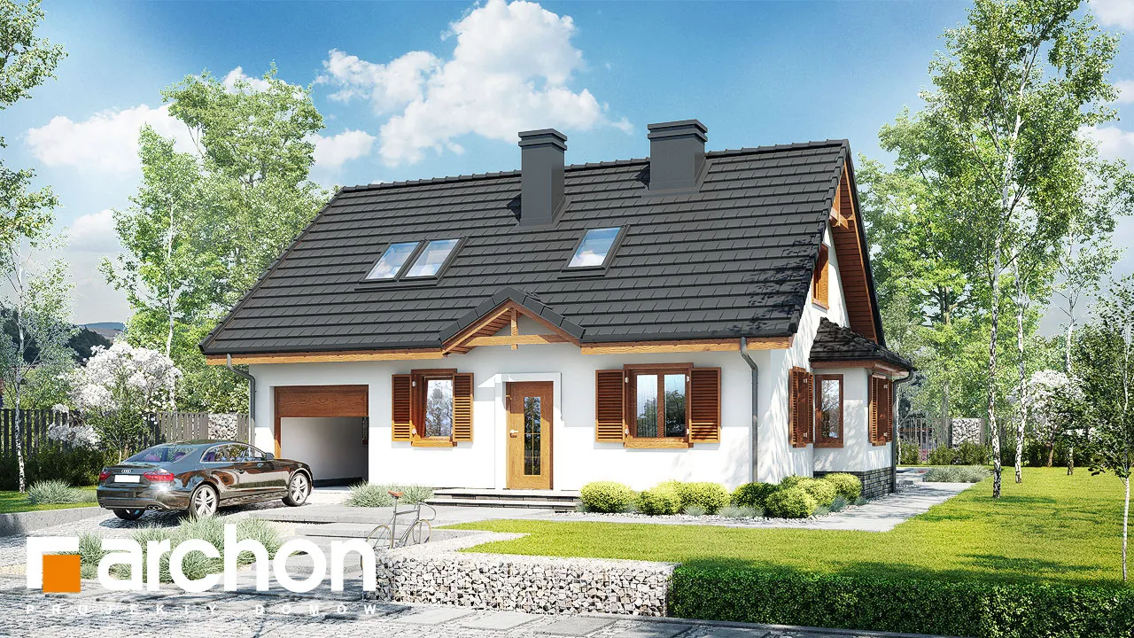 Экономичный в строительстве и эксплуатации проект дома, отличающийся традиционной отделкой фасада. Дневная зона включает в себя уютную гостиную с диванами перед камином и домашним кинотеатром и полуоткрытую кухню с большим количеством рабочих поверхностей и мест для хранения. Дополнительная комната, благодаря расположенной рядом с ней ванной комнате, прекрасно подойдет в качестве гостевой спальни. Из тамбура можно попасть в котельную и гараж с подсобным помещением. Частная зона для жильцов расположена в мансарде и включает в себя три светлые спальни, удобную ванную комнату и две гардеробные. Этот проект может быть реализован в два этапа.
