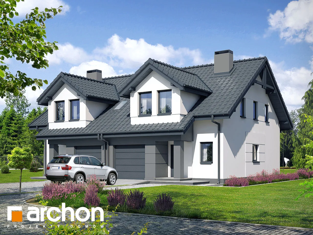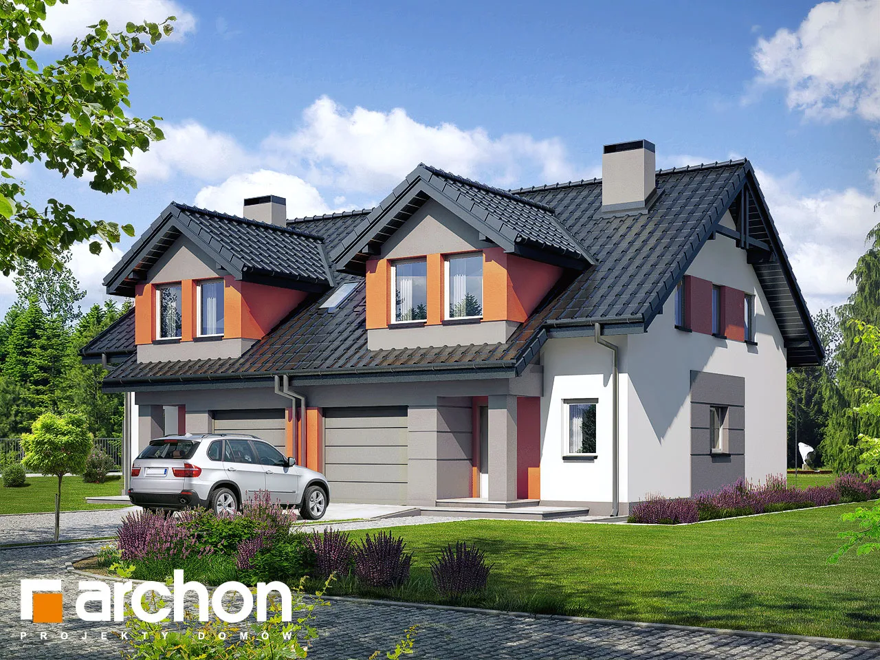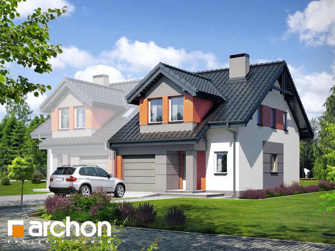 Отличающийся современными линиями, односемейный дом с гаражом, предназначенный для сблокированной застройки. Функциональная программа была решена на двух этажах - первом и мансарде. Из тамбура, с входом в гараж, мы попадаем в дневную зону первого этажа. Она образована гостиной с камином, расположенной сбоку, плавно соединяющейся со столовой и кухней. Особенно впечатляет застекленный двойной выход на террасу, оптически увеличивающий пространство. Рядом с входом находится ванная комната. Лестница, видимая из гостиной, ведет в мансарду, где расположены четыре комфортабельные комнаты - две из них с балконами - и ванная комната с душем и угловой ванной. Чрезвычайно функциональный дом сочетает в себе современный дизайн и рациональное использование пространства.