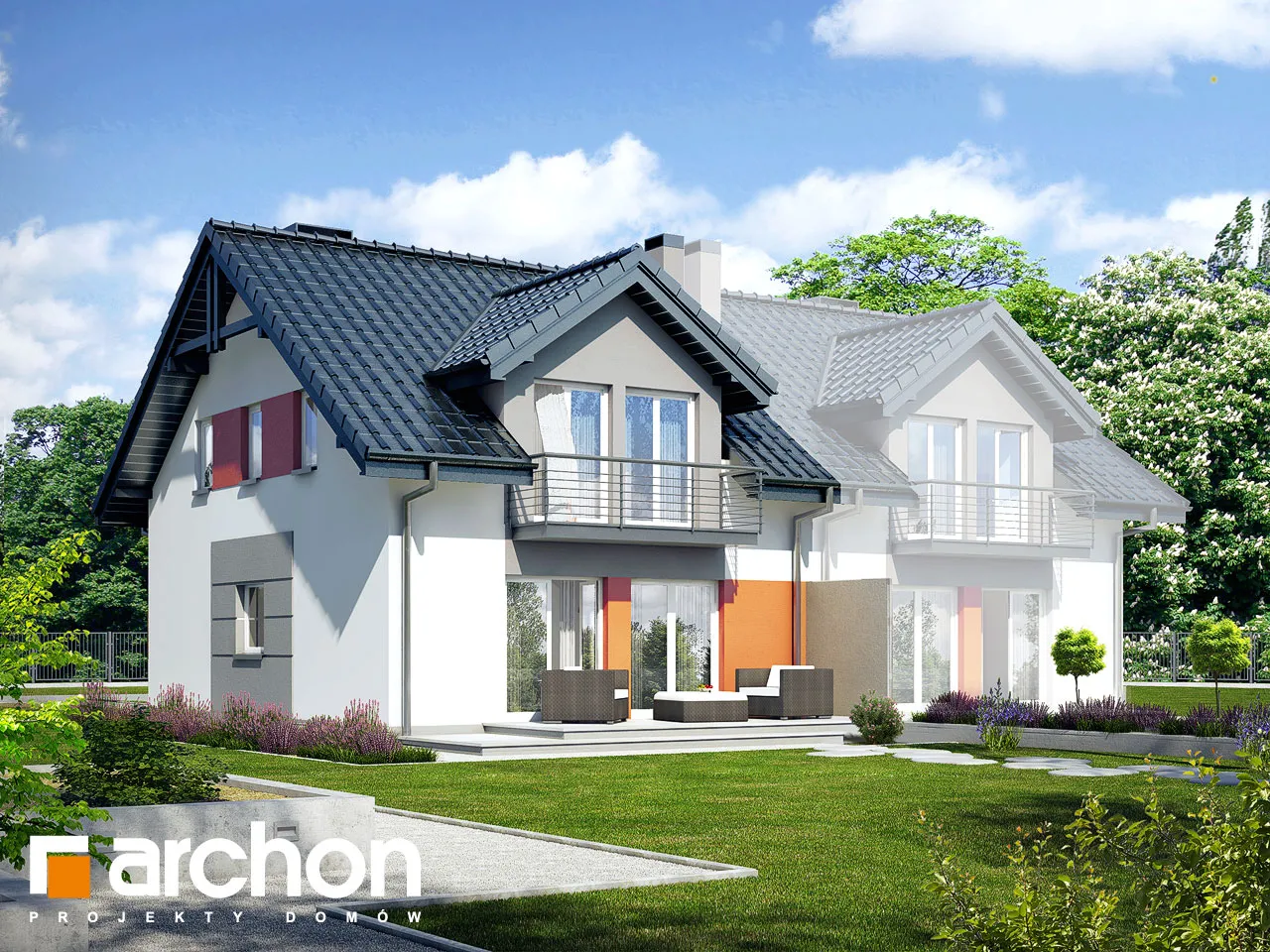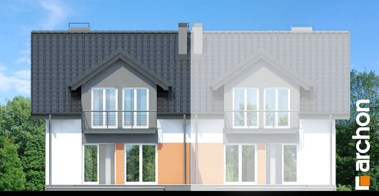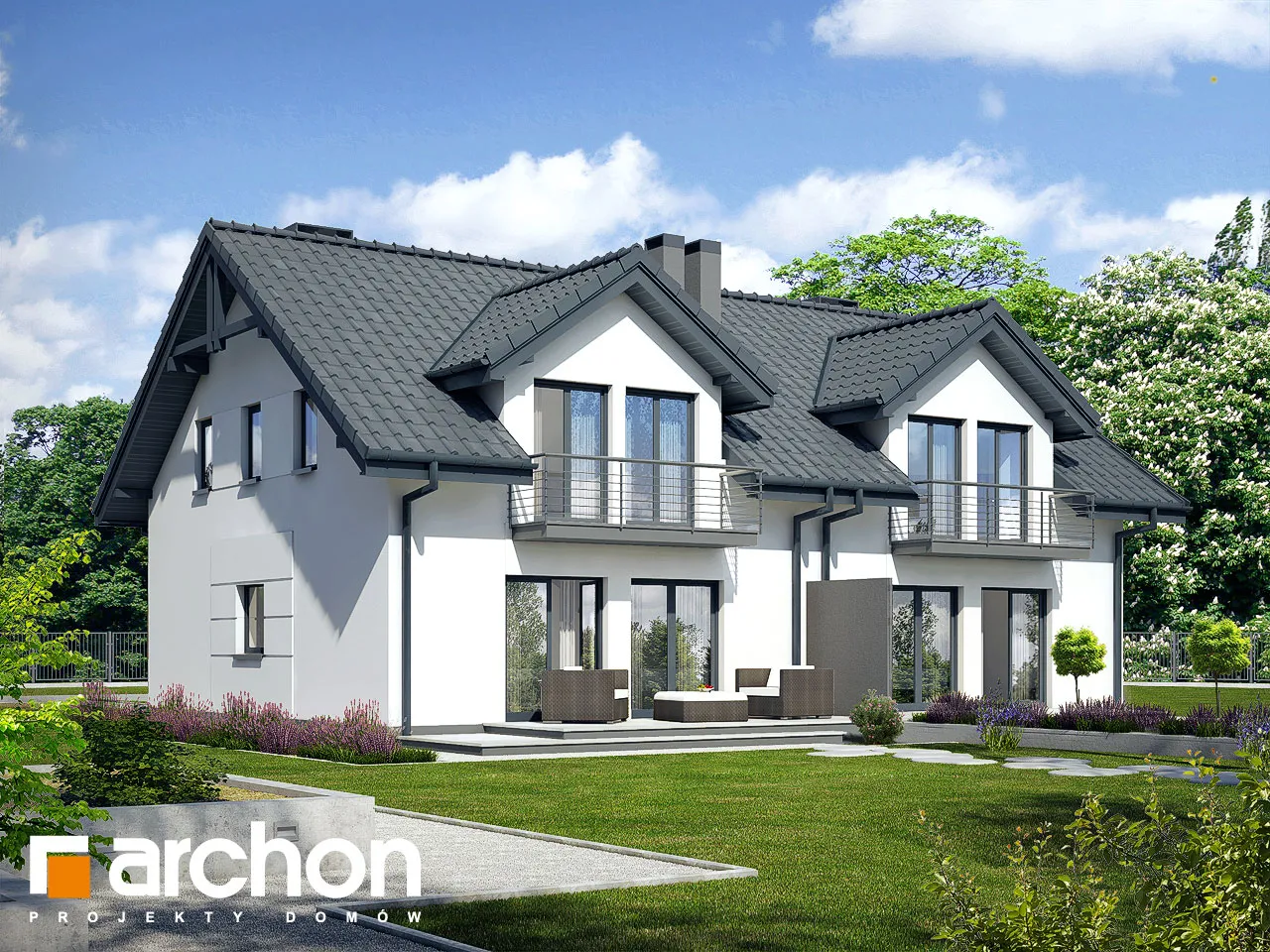 Отличающийся современными линиями, односемейный дом с гаражом, предназначенный для сблокированной застройки. Функциональная программа была решена на двух этажах - первом и мансарде. Из тамбура, с входом в гараж, мы попадаем в дневную зону первого этажа. Она образована гостиной с камином, расположенной сбоку, плавно соединяющейся со столовой и кухней. Особенно впечатляет застекленный двойной выход на террасу, оптически увеличивающий пространство. Рядом с входом находится ванная комната. Лестница, видимая из гостиной, ведет в мансарду, где расположены четыре комфортабельные комнаты - две из них с балконами - и ванная комната с душем и угловой ванной. Чрезвычайно функциональный дом сочетает в себе современный дизайн и рациональное использование пространства.