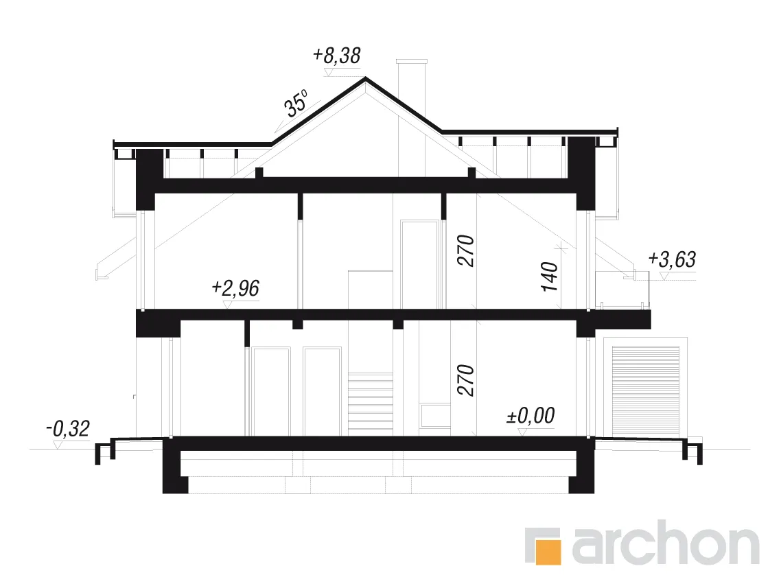 - Разрезы со всеми размерами (высоты этажей, кровли и др.)