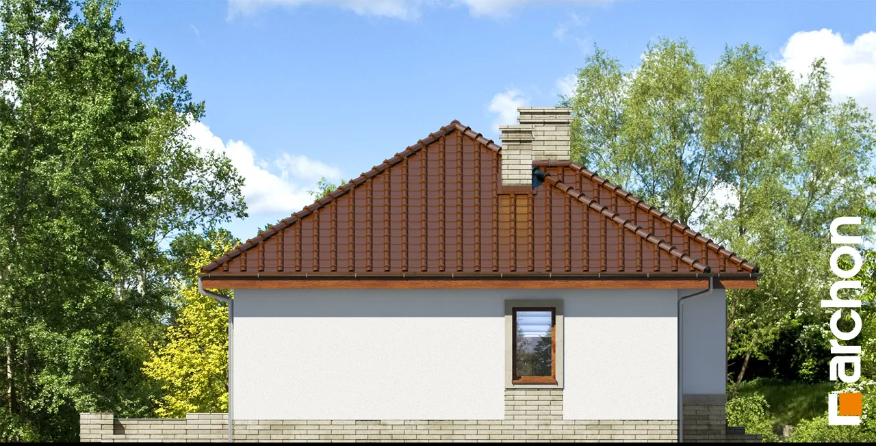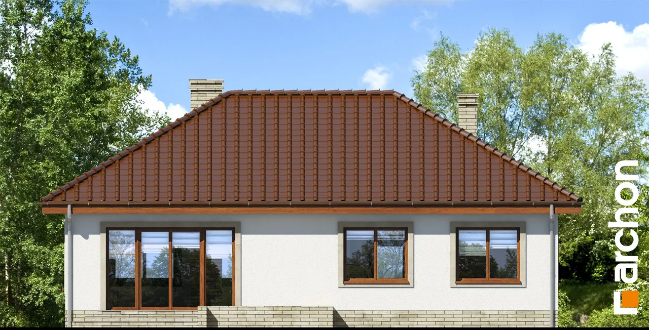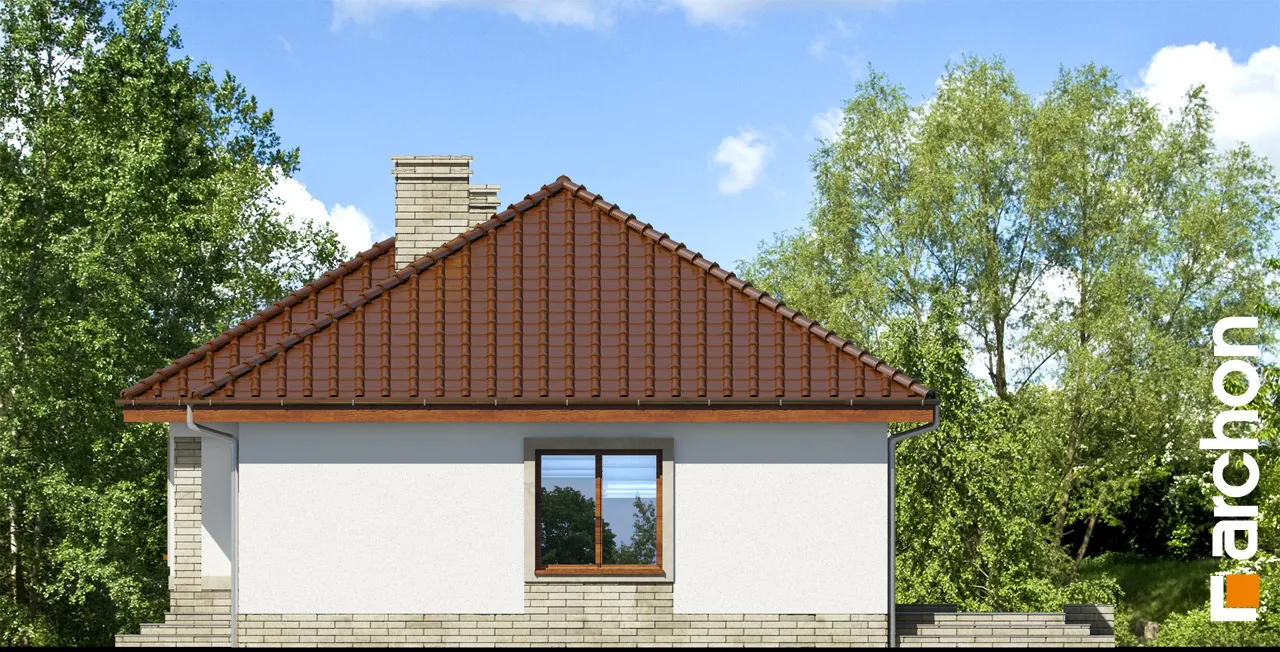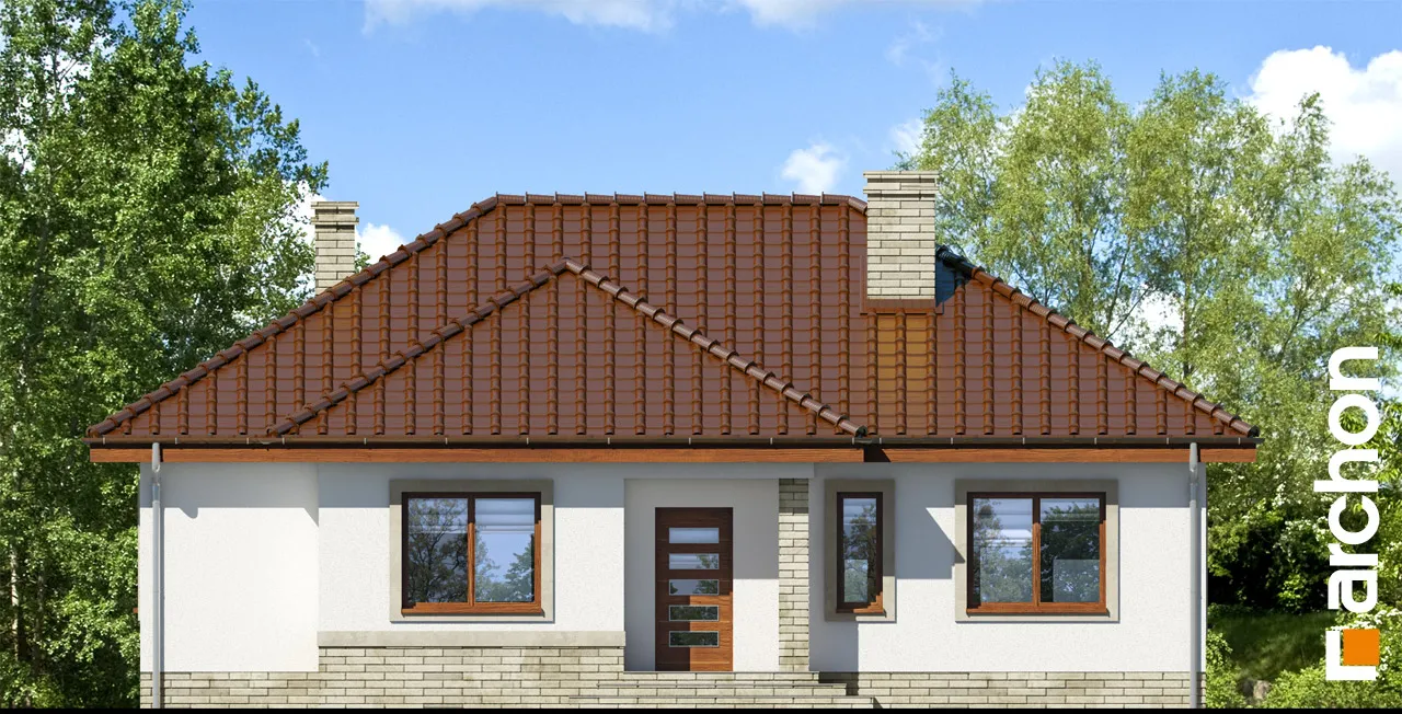 Проект одноэтажного дома с компактным и простым корпусом, из коллекции: проекты небольших домов. Рационально продуманная функциональная программа интерьера обеспечивает комфортное использование небольшого одноэтажного дома. Элегантно отделанные внешние фасады подчеркивают стильный характер здания. Светлая штукатурка дополняется столярными изделиями цвета дерева и соответствующим образом подобранными тонами черепицы. Интерьер четко разделен на дневную и ночную части. Через тамбур и холл мы попадаем в открытую и очень хорошо освещенную жилую зону. В гостиной стоит угловой диван перед домашним кинотеатром, а застекленная терраса плавно соединяет дом с садом. Кофейный уголок на террасе - идеальное место для встреч с друзьями и семьей. В обеденной зоне можно накрыть большой стол. Кухня, спроектированная в форме буквы "U", имеет достаточно рабочих поверхностей и места для хранения. В жилой зоне также спроектирован общый туалет. Пространство ночной зоны было очень практично спланировано. Здесь расположены две детские спальни, а на противоположной стороне коридора - уютная спальня родителей с собственным гардеробом. Светлая ванная комната завершает программу ночной части. В котельную можно попасть из тамбура. Представленный проект дома - интересное предложение для инвесторов, которые хотели бы поменять квартиру в многоквартирном доме на небольшой и комфортный дом.