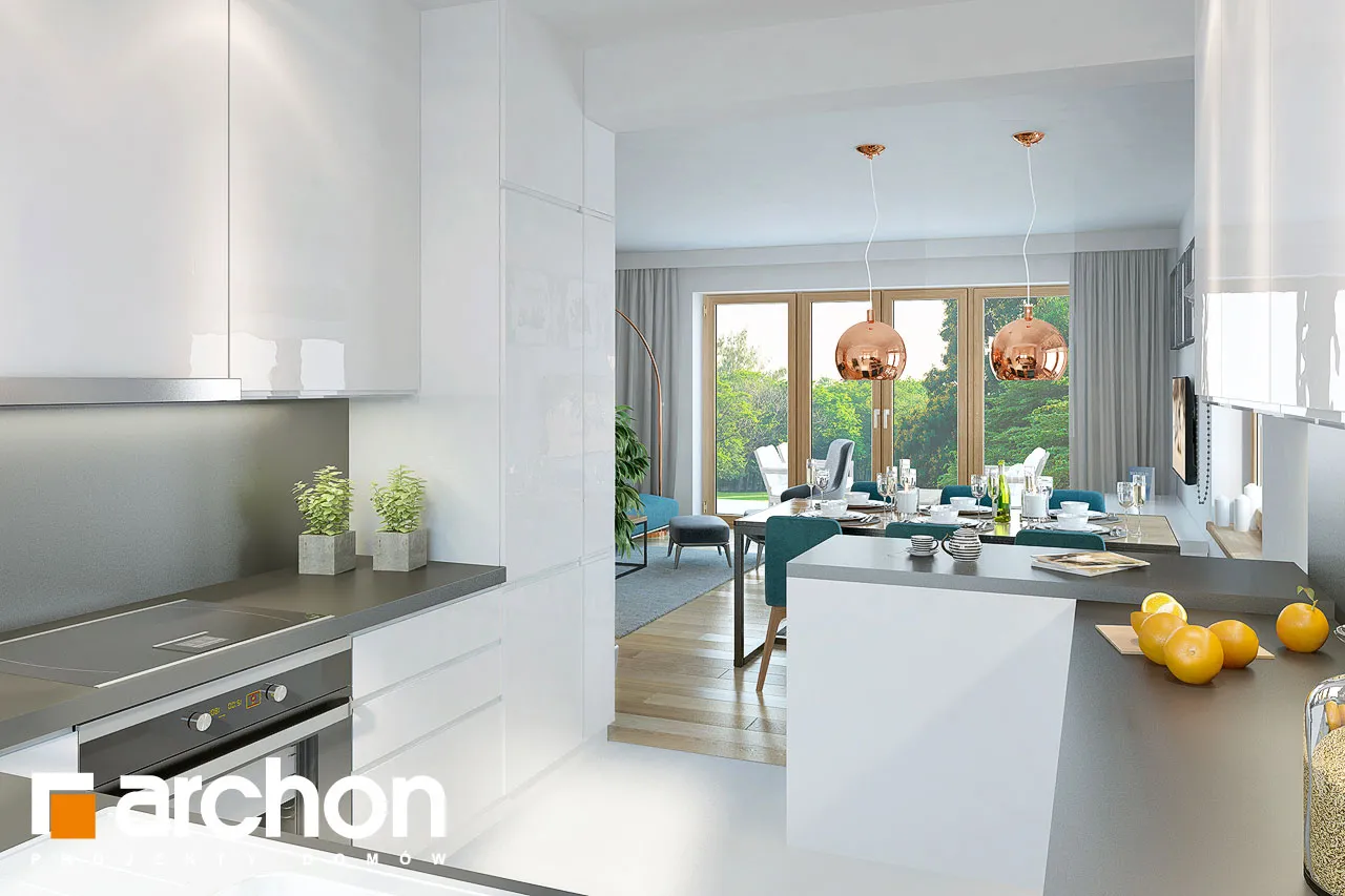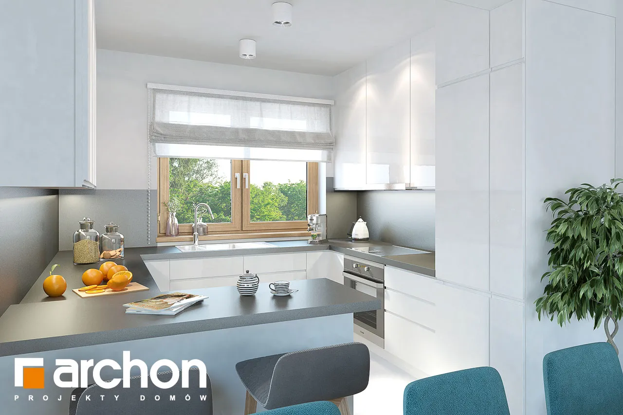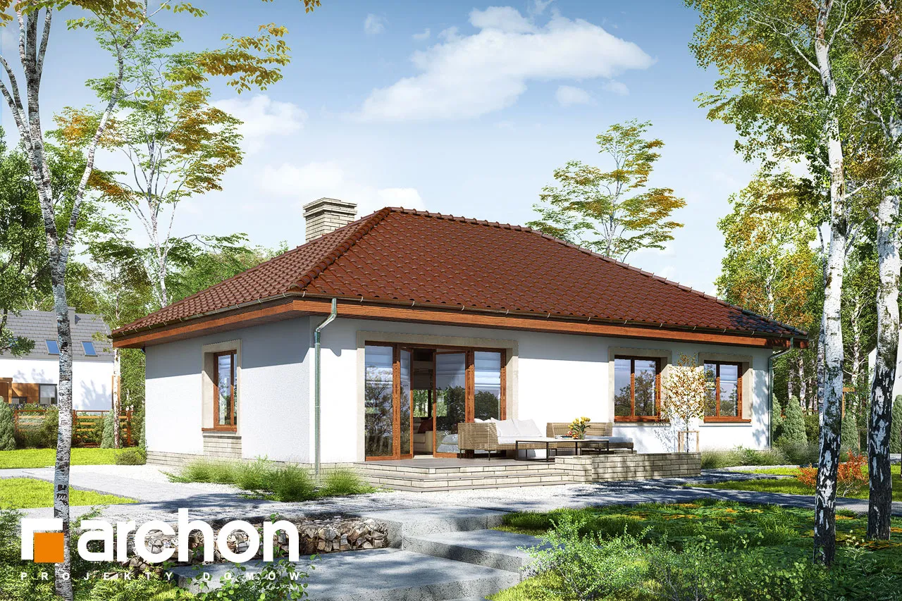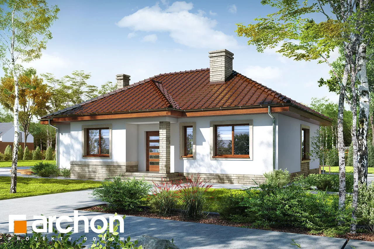 Проект одноэтажного дома с компактным и простым корпусом, из коллекции: проекты небольших домов. Рационально продуманная функциональная программа интерьера обеспечивает комфортное использование небольшого одноэтажного дома. Элегантно отделанные внешние фасады подчеркивают стильный характер здания. Светлая штукатурка дополняется столярными изделиями цвета дерева и соответствующим образом подобранными тонами черепицы. Интерьер четко разделен на дневную и ночную части. Через тамбур и холл мы попадаем в открытую и очень хорошо освещенную жилую зону. В гостиной стоит угловой диван перед домашним кинотеатром, а застекленная терраса плавно соединяет дом с садом. Кофейный уголок на террасе - идеальное место для встреч с друзьями и семьей. В обеденной зоне можно накрыть большой стол. Кухня, спроектированная в форме буквы "U", имеет достаточно рабочих поверхностей и места для хранения. В жилой зоне также спроектирован общый туалет. Пространство ночной зоны было очень практично спланировано. Здесь расположены две детские спальни, а на противоположной стороне коридора - уютная спальня родителей с собственным гардеробом. Светлая ванная комната завершает программу ночной части. В котельную можно попасть из тамбура. Представленный проект дома - интересное предложение для инвесторов, которые хотели бы поменять квартиру в многоквартирном доме на небольшой и комфортный дом.