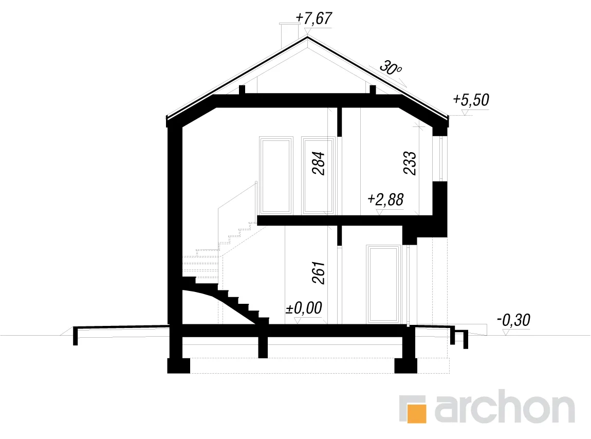 - Разрезы со всеми размерами (высоты этажей, кровли и др.)