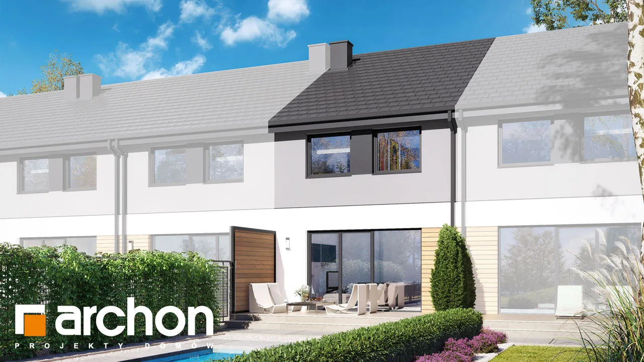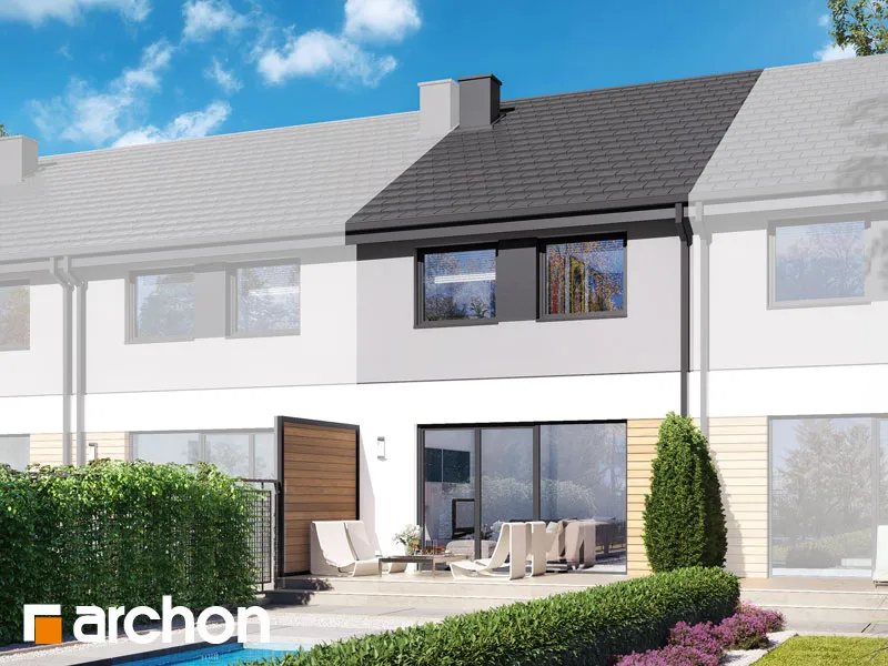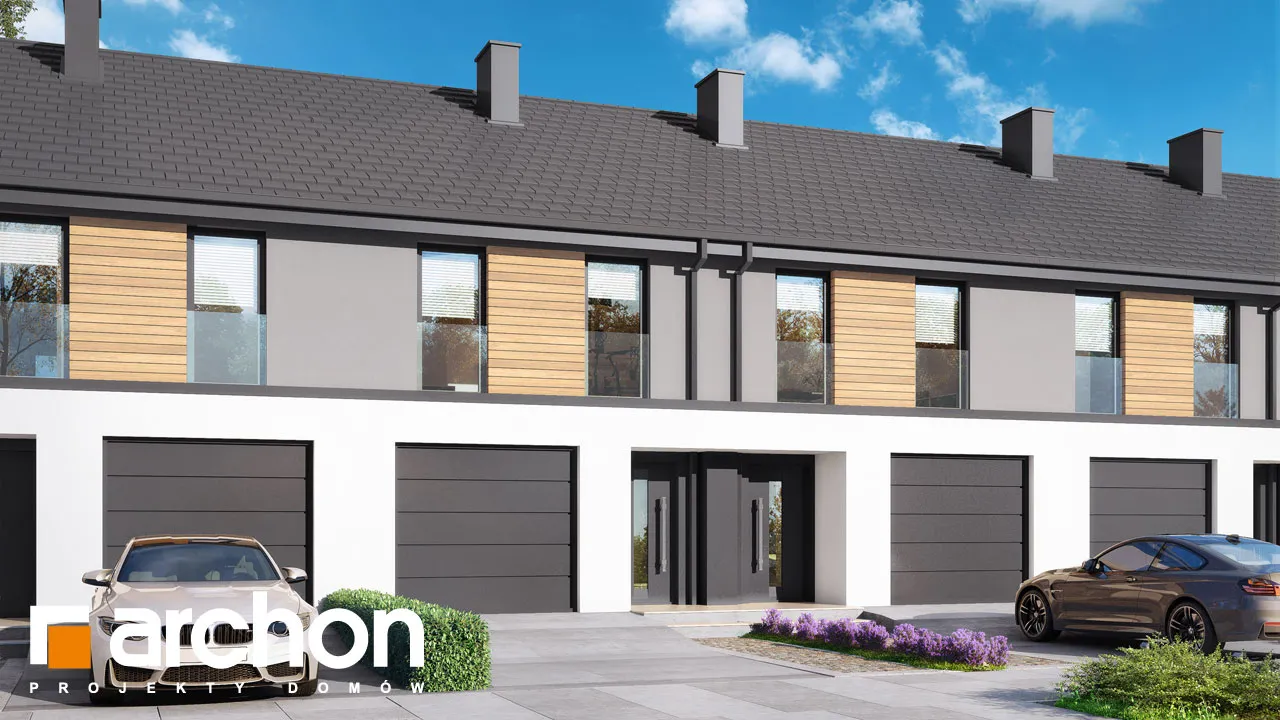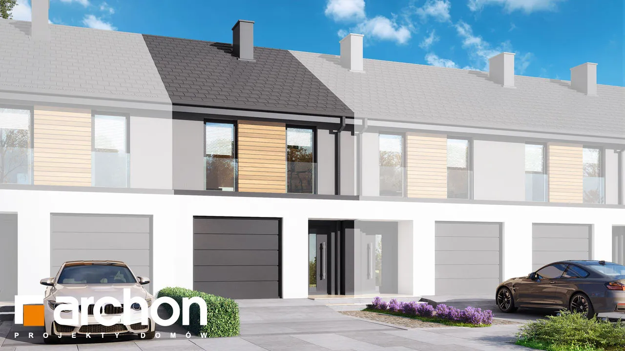 Мы представляем проект дома с жилой мансардой, который будет построен как дом для рядовой застройки. Простой и экономичный по конструкции корпус здания был покрыт незамысловатой двускатной крышей. В сегменте спроектирован единый гараж, который отделен от жилой части тамбуром. Отделка фасада создает красивую композицию, полную современности, основанную на сочетании светло-серой штукатурки с деревянной облицовкой. Деревянная отделка графитового цвета и плоская черепица антрацитового цвета являются элегантным дополнением ко всему ансамблю. Вход в сегмент визуально выделяется более темной штукатуркой. Прихожая со встроенными шкафами для хранения ведет в открытую и прекрасно освещенную жилую зону дома. Это удобное пространство, состоящее из гостиной с обеденной зоной и мини-кухни, оборудованной практичными столешницами и предлагающей комфортные условия для работы. В туалет, расположенный под лестницей, можно попасть из прихожей, а в гараж - из тамбура. В приватной зоне в мансарде дома спроектированы три уютные комнаты, одна из них - просторная спальня родителей. Две просторные детские комнаты были спроектированы в другой части мансарды, на противоположной стороне лестницы. Программу ночной части дополняет общая для всех проживающих ванная комната, а благодаря высокой коленной стене комнаты приобрели большую просторность. Преимуществом проекта является продуманная организация пространства для хранения. В холле на первом этаже и в мансарде, а также в спальнях учтена возможность установки множества вместительных шкафов. "Дом в черной смородине (ГС)" относится к категории: проекты домов в современном стиле, проекты небольших домов, проекты домов с жилой мансардой, проекты домов для рядовой застройки, проекты для застройщиков, проекты домов с гаражом на одну машину.