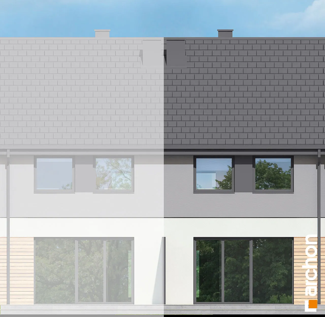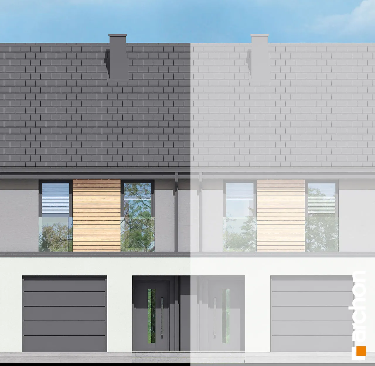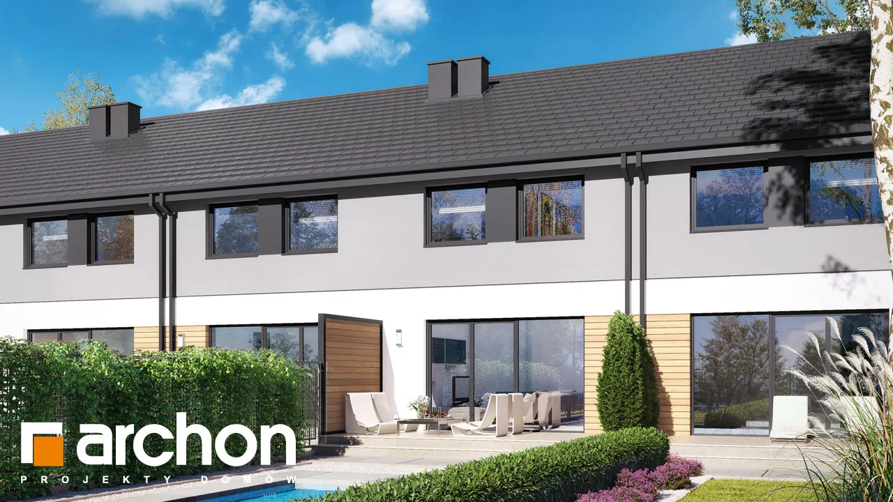 Мы представляем проект дома с жилой мансардой, который будет построен как дом для рядовой застройки. Простой и экономичный по конструкции корпус здания был покрыт незамысловатой двускатной крышей. В сегменте спроектирован единый гараж, который отделен от жилой части тамбуром. Отделка фасада создает красивую композицию, полную современности, основанную на сочетании светло-серой штукатурки с деревянной облицовкой. Деревянная отделка графитового цвета и плоская черепица антрацитового цвета являются элегантным дополнением ко всему ансамблю. Вход в сегмент визуально выделяется более темной штукатуркой. Прихожая со встроенными шкафами для хранения ведет в открытую и прекрасно освещенную жилую зону дома. Это удобное пространство, состоящее из гостиной с обеденной зоной и мини-кухни, оборудованной практичными столешницами и предлагающей комфортные условия для работы. В туалет, расположенный под лестницей, можно попасть из прихожей, а в гараж - из тамбура. В приватной зоне в мансарде дома спроектированы три уютные комнаты, одна из них - просторная спальня родителей. Две просторные детские комнаты были спроектированы в другой части мансарды, на противоположной стороне лестницы. Программу ночной части дополняет общая для всех проживающих ванная комната, а благодаря высокой коленной стене комнаты приобрели большую просторность. Преимуществом проекта является продуманная организация пространства для хранения. В холле на первом этаже и в мансарде, а также в спальнях учтена возможность установки множества вместительных шкафов. "Дом в черной смородине (ГС)" относится к категории: проекты домов в современном стиле, проекты небольших домов, проекты домов с жилой мансардой, проекты домов для рядовой застройки, проекты для застройщиков, проекты домов с гаражом на одну машину.