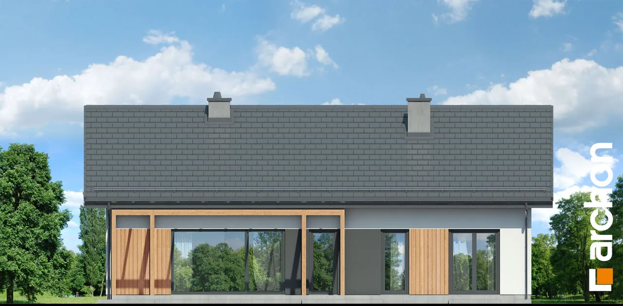 Проект одноэтажного дома с простым корпусом и двускатной крышей положительно влияет на стоимость строительства, а тщательно организованная функциональная программа обеспечивает комфортное использование. Отделка фасада основана на элегантной композиции из белой и графитовой штукатурки с натуральной облицовкой. Благодаря правильно расположенному остеклению интерьер наполнен естественным светом и плавно соединяется с садом. На террасе, которая покрыта деревянной перголой, найдется место для летней столовой, а также кофейного уголка или зоны отдыха. Жилая зона широко открыта для вида на сад, раздвижное остекление, предусмотренное в конструкции, обеспечивает беспрепятственную связь и большие возможности для обустройства интерьера. Функциональная кухня имеет большой остров с удобной столешницей и барной стойкой, а также практичную, высокую встроенную мебель. Из кухни у нас есть прямой выход на террасу, что позволяет эффективно выносить приготовленные блюда на улицу. Частная часть дома включает в себя родительскую комнату, спроектированную с гардеробной и ванной комнатой, две спальни для детей, кабинет, открытый в сад, и общую для всех ванную комнату с естественным освещением. Газовая котельная, предусмотренная проектом, служит также прачечной, а в ее части, скрытой раздвижными дверями, размещены вместительные шкафы для хранения вещей. "Дом в баллотах" расширяет категории: проекты одноэтажных домов, проекты домов в современном стиле, проекты небольших домов.