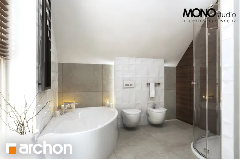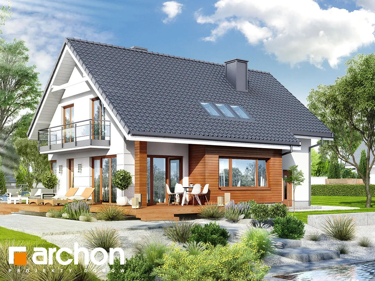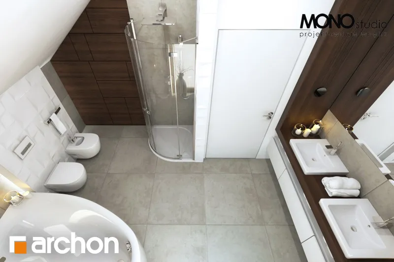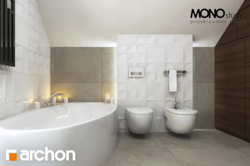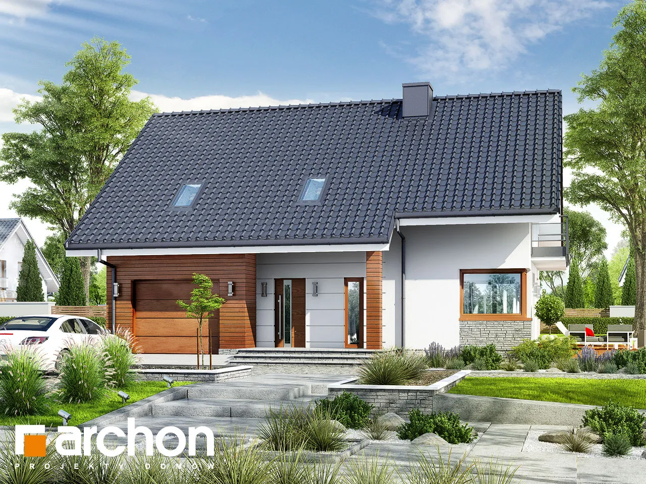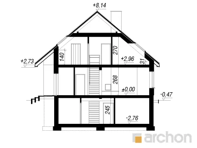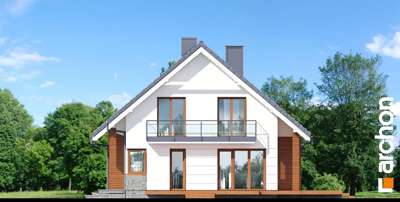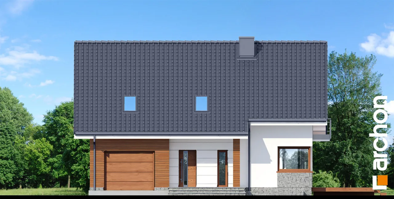 Простой по форме, стильный дизайн дома, привлекающий внимание своей исключительно функциональной внутренней планировкой. Элегантно оформленные фасады зданий основаны на сочетании белой штукатурки с деревянной облицовкой. Входная зона выделена практичным навесом. Панорамное остекление органично соединяет интерьер с окружающим садом и естественно освещает комнаты. Большая терраса является дополнительной зоной отдыха, а ее крытая часть обеспечивает отдых на свежем воздухе в любую погоду. Представительская жилая зона на первом этаже - это светлое пространство, обеспечивающее комфортный отдых для жильцов и их гостей. Просторная гостиная условно разделена на зону отдыха с угловым диваном перед домашним кинотеатром и камином и обеденную зону в стеклянном углу. Большой семейный стол, расположенный здесь, можно свободно разложить во время праздников или других торжеств. Открытая кухня прекрасно освещена угловым окном и дверью на террасу, а ее главное преимущество - оптимальное количество рабочих поверхностей и мест для хранения, а также практичный полуостров с приставкой для завтрака. Из тамбура можно попасть в гараж и подсобное помещение с отдельным внешним выходом. В подвале дома запроектирована хозяйственная часть, которая состоит из котельной на твердом топливе, прачечной с сушильной комнатой, кладовой и дополнительной кладовой. Мансарда дома - это уютная ночная зона с тремя спальнями и дополнительным кабинетом. В комнате родителей есть отдельная гардеробная, а удобные детские комнаты соединены общей, доступной из обеих комнат. Большая ванная комната с естественным освещением оборудована угловой ванной, душем и двумя умывальниками. Этот уникальный проект дома относится к популярным категориям: проекты небольших домов, проекты домов с подвалом, современные и для участка на склоне.