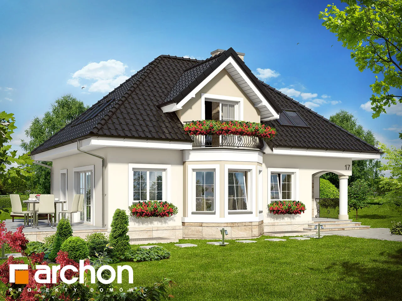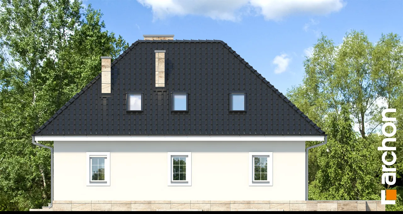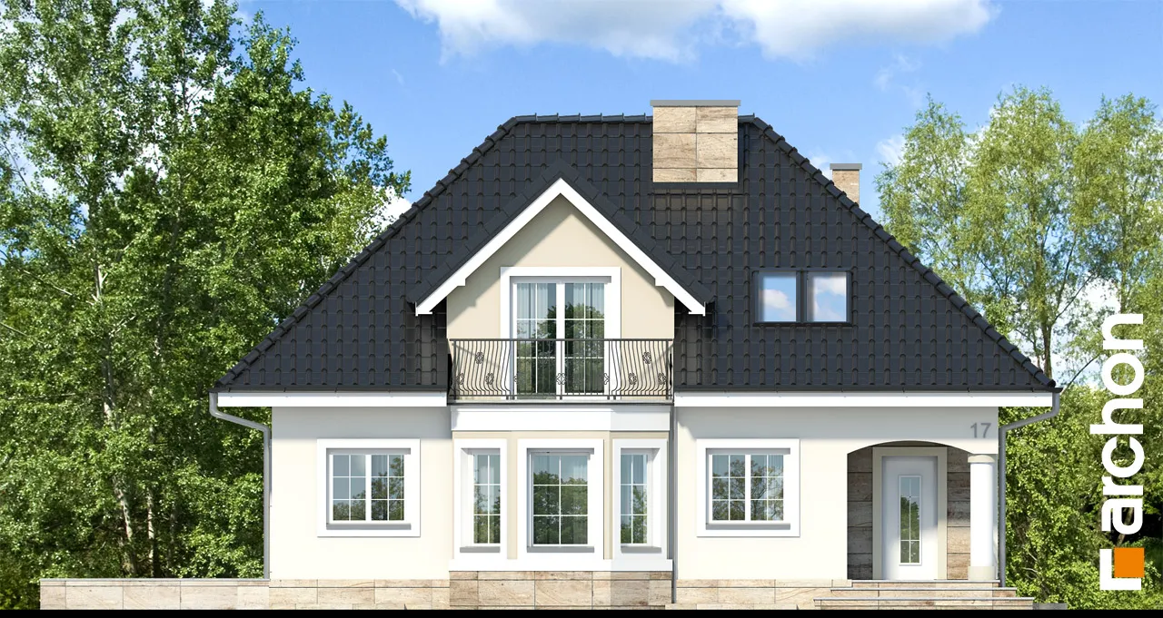 Привлекательный дом с классической формой и оптимально используемым внутренним пространством. Внимание привлекает арка входа и большая терраса, спроектированная на боковой стороне дома, благодаря которой он освещается дольше. Главной особенностью жилой зоны на первом этаже является представительная, светлая гостиная, соединенная со столовой эркером. Спроектированная на первом этаже, дополнительная комната может служить в качестве кабинета. Котельная, доступная из тамбура, в подвале дома. Удобная лестница ведет на мансарду в приватную часть дома. В доме три светлые и просторные спальни, удобная ванная комната с полной функциональной программой и практичная гардеробная.