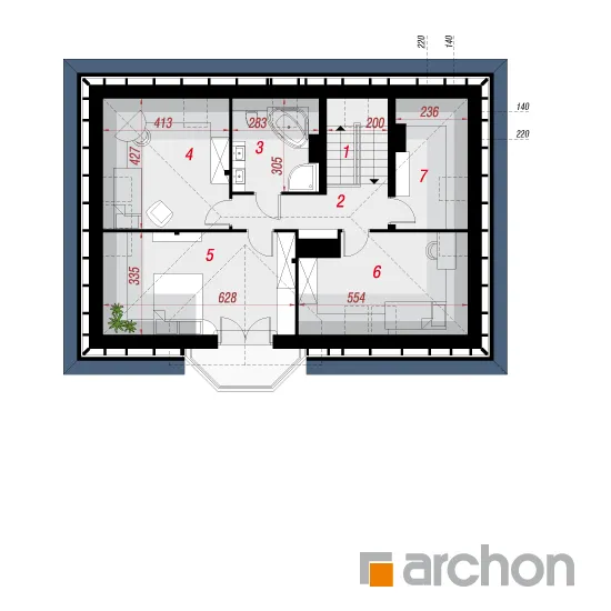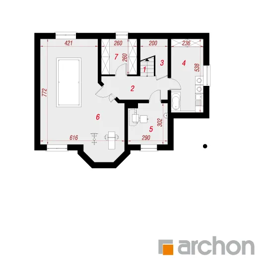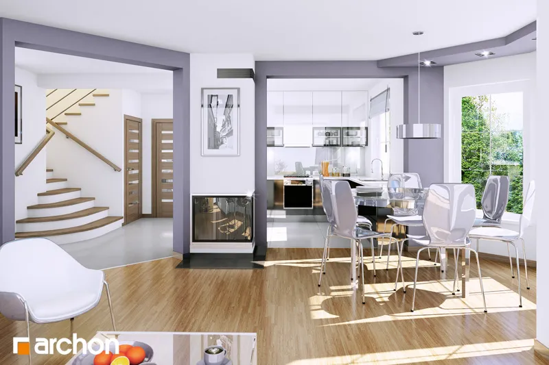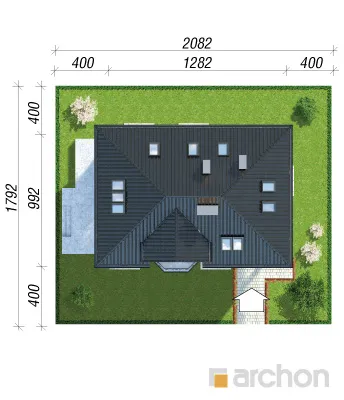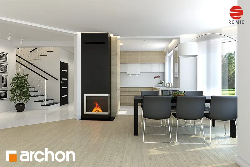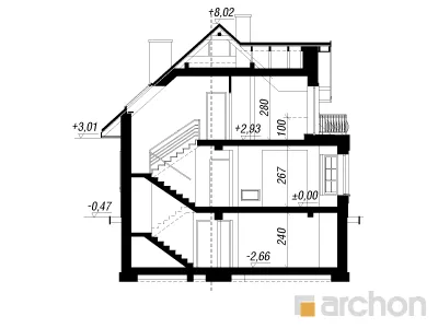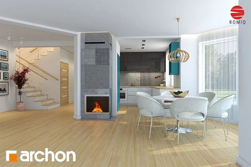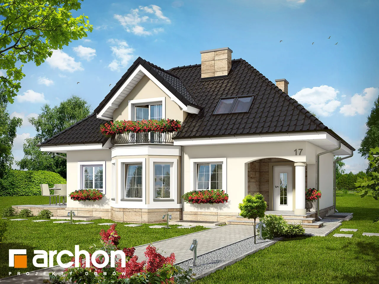 Привлекательный дом с классической формой и оптимально используемым внутренним пространством. Внимание привлекает арка входа и большая терраса, спроектированная на боковой стороне дома, благодаря которой он освещается дольше. Главной особенностью жилой зоны на первом этаже является представительная, светлая гостиная, соединенная со столовой эркером. Спроектированная на первом этаже, дополнительная комната может служить в качестве кабинета. Котельная, доступная из тамбура, в подвале дома. Удобная лестница ведет на мансарду в приватную часть дома. В доме три светлые и просторные спальни, удобная ванная комната с полной функциональной программой и практичная гардеробная.