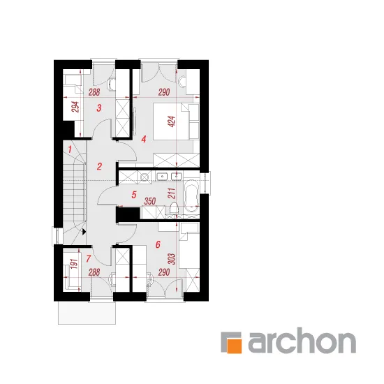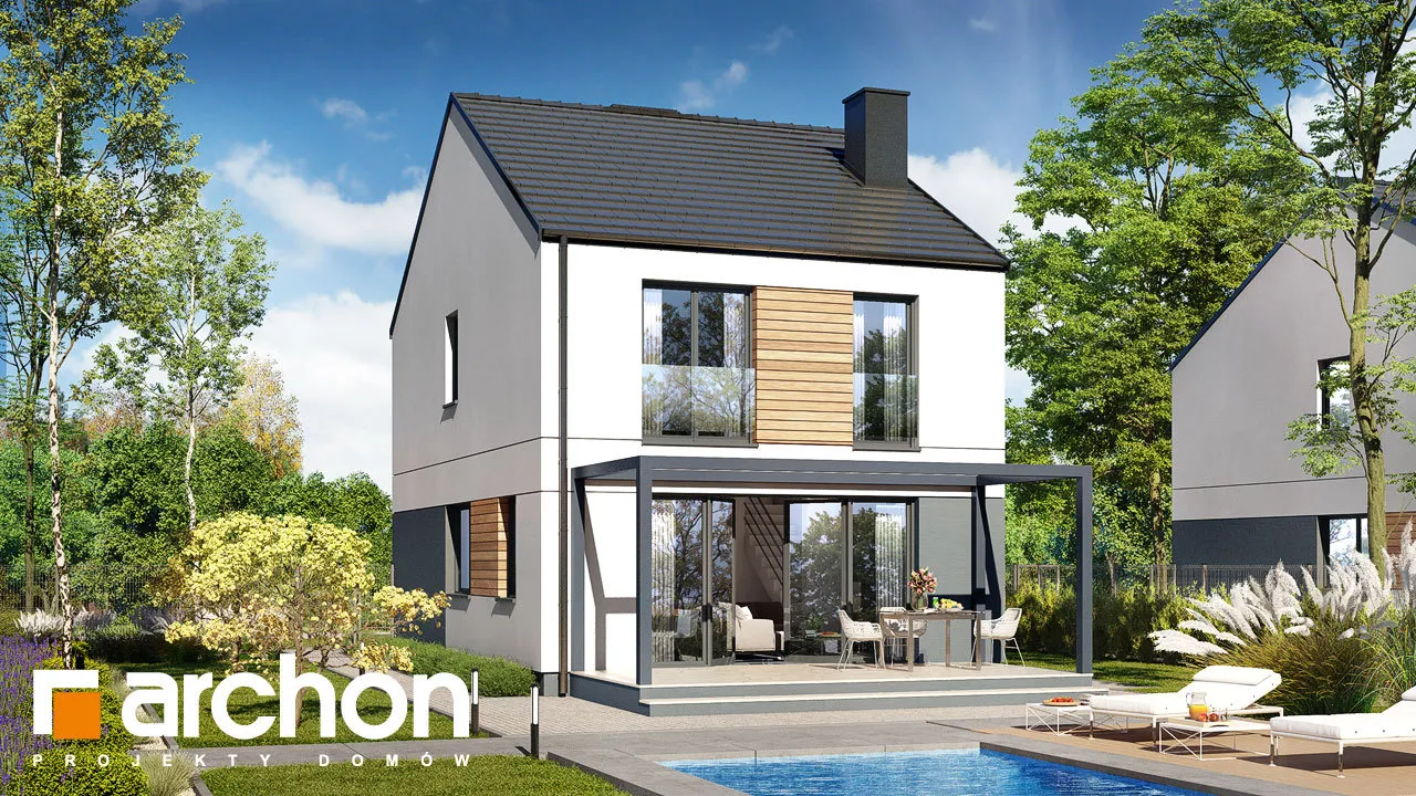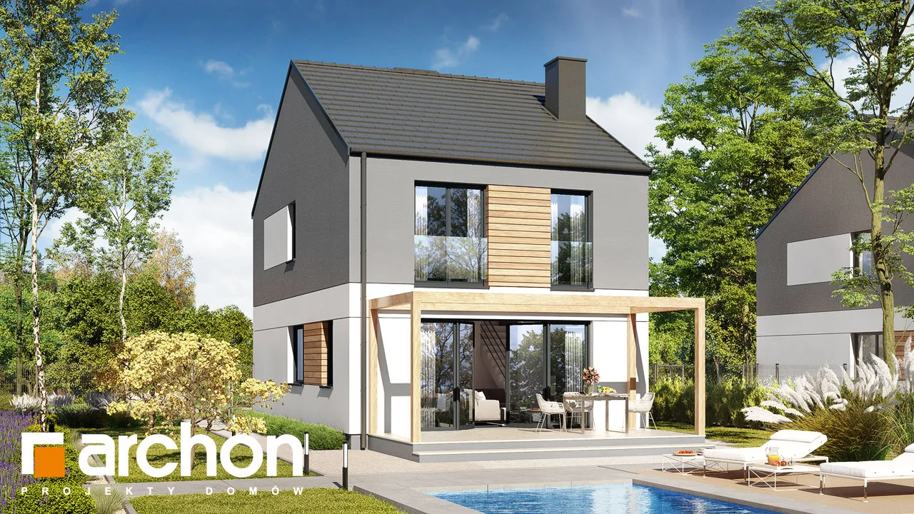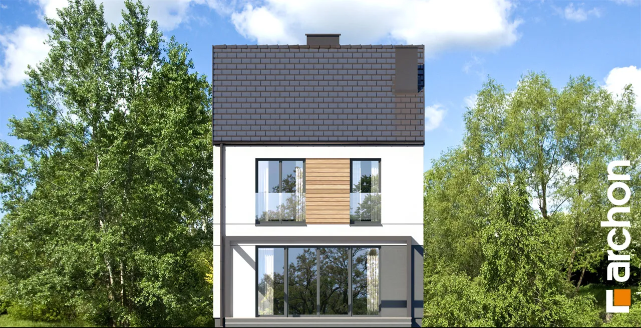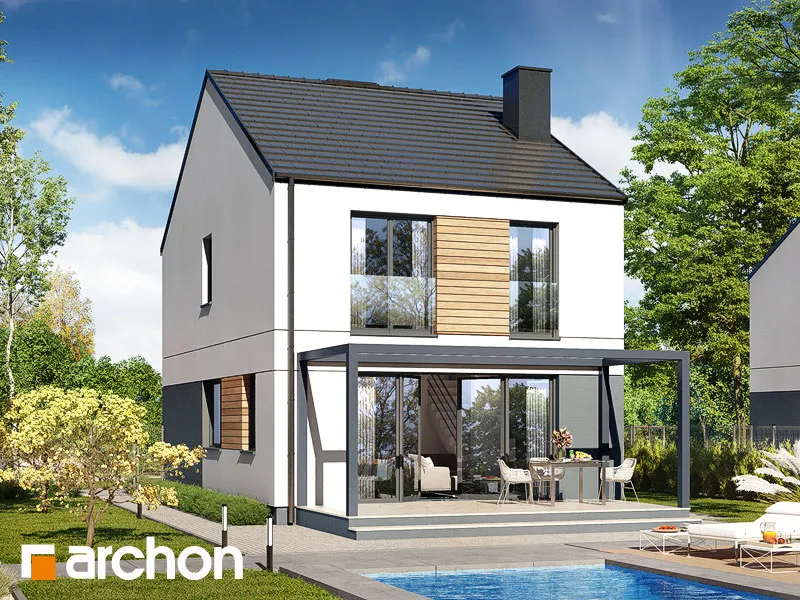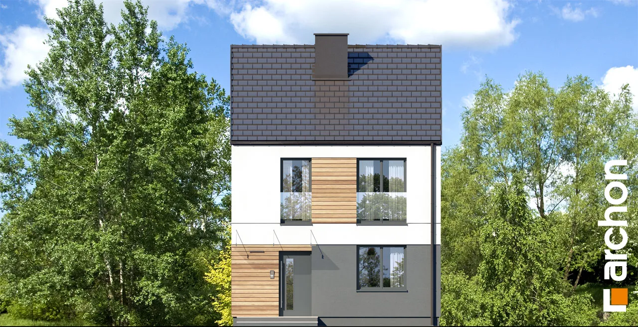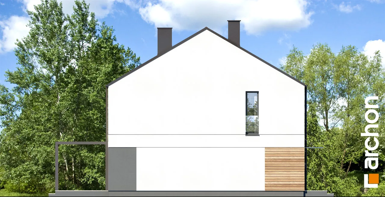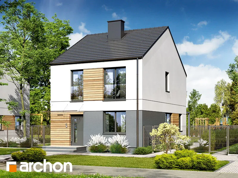 Представляем очень интересный проект небольшого дома с жилой мансардой и двускатной крышей, который пополняет коллекцию: проекты домов площадью до 70 м2. Преимуществом проекта являются низкие затраты на строительство, благодаря простой конструкции корпуса и крыши, а благодаря высокой коленной стене мансардные помещения приобретают простор. Современная форма в сочетании с большим остеклением, приглушенной отделкой, разнообразной облицовкой из натурального дерева выглядит эффектно. Крыша без карнизов была покрыта модной плоской черепицей антрацитового цвета. Небольшой по площади интерьер отличается рациональной организацией пространства, а чрезвычайно функциональная планировка помещений обеспечивает жильцам комфорт. Позаботились и о месте для хранения вещей, предусмотрев вместительные шкафы в тамбуре и холле на первом этаже. В прекрасно освещенной просторной гостиной с камином разместился угловой диван, а в столовой, спроектированной прямо рядом с ней, нашлось место для большого обеденного стола. Кухня оборудована высокими встроенными шкафами, практичными столешницами для приготовления блюд, а обилие естественного света повышает комфорт работы. Дополнительная комната на первом этаже может служить спальней для гостей. В ванную комнату с душем можно попасть из прихожей. Мансарда - это комфортная приватная зона дома, где спроектированы четыре комнаты. Самая большая комната - спальня родителей, где есть место для шкафов и удобная кровать. В двух просторных детских комнатах есть место для кроватей, письменных столов и шкафов для хранения вещей. Третья, самая маленькая комната может быть использована в качестве кабинета или дополнительной спальни. Из прихожей можно попасть в уютную ванную комнату с естественным освещением. "Дом в ривиях" относится к категории: проекты домов с жилой мансардой, проекты домов с двускатной крышей, проекты небольших домов, проекты современных домов, проекты недорогих в строительстве домов.