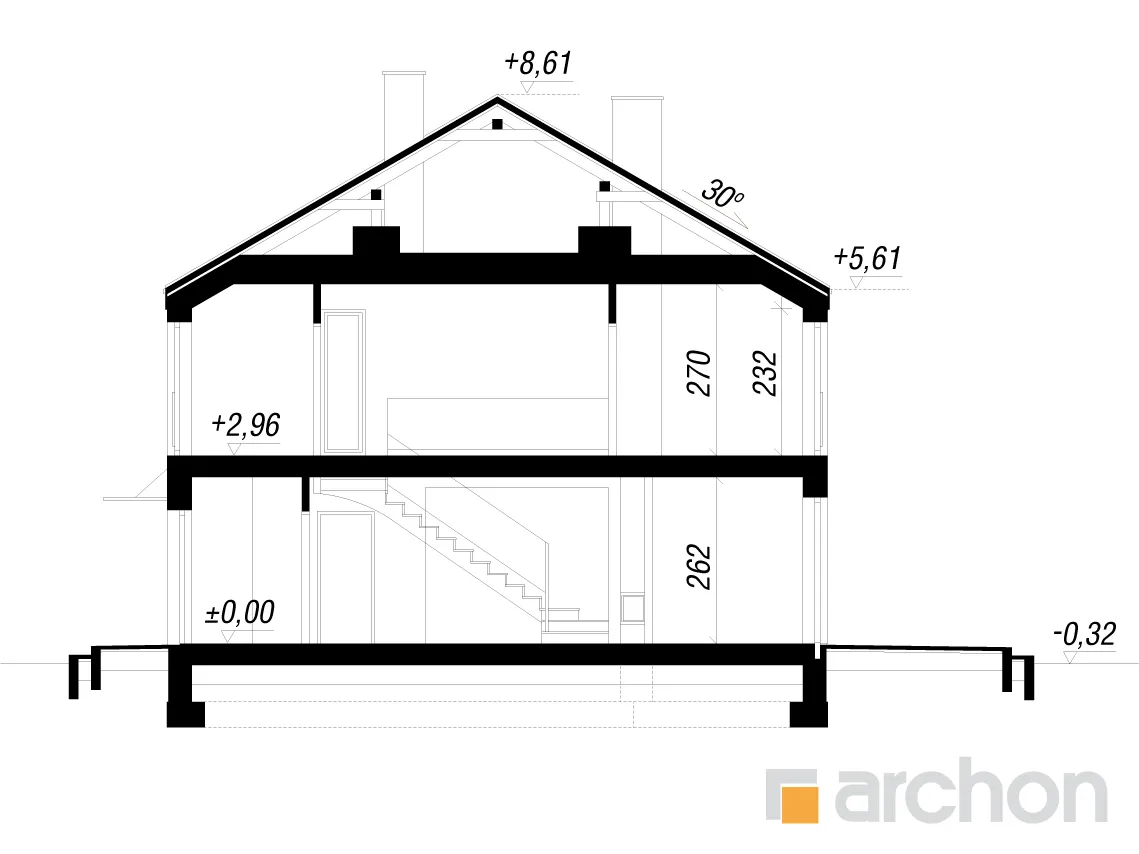 - Разрезы со всеми размерами (высоты этажей, кровли и др.)