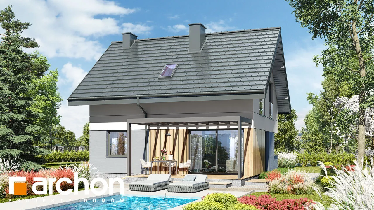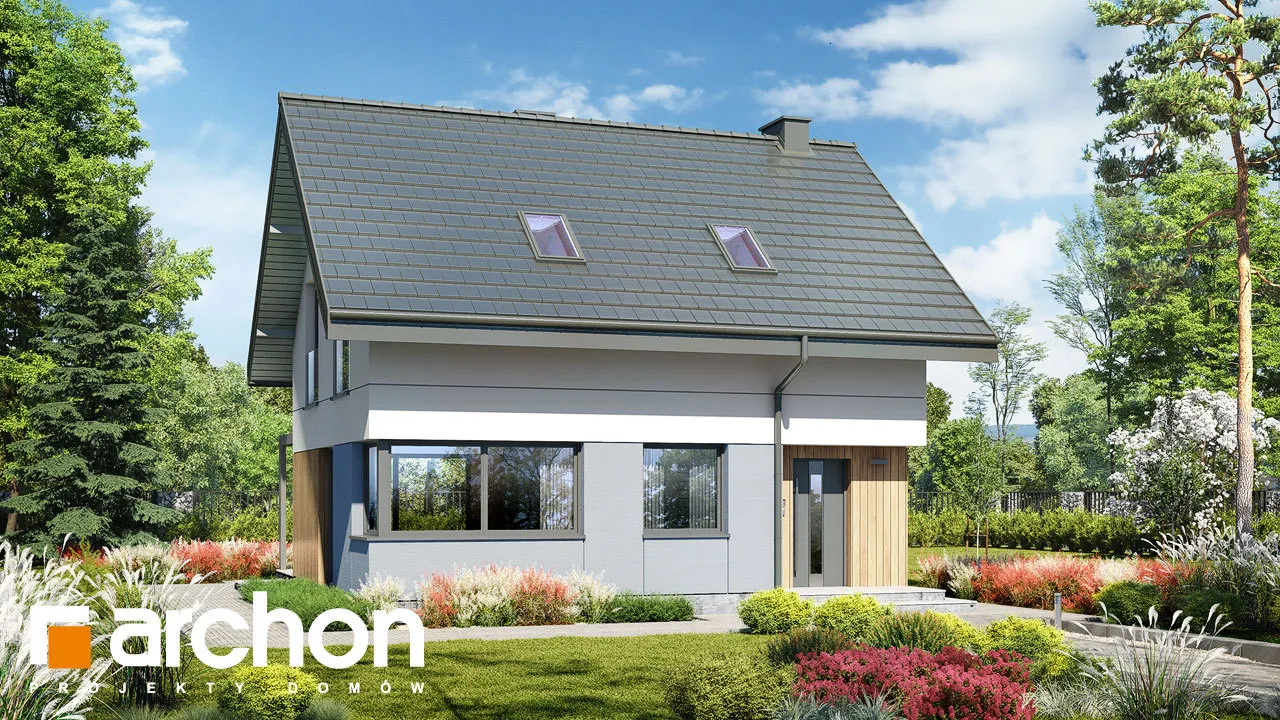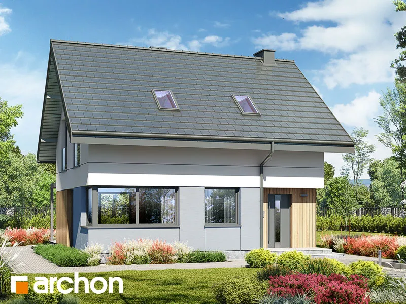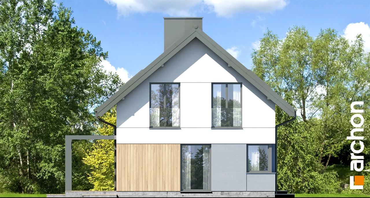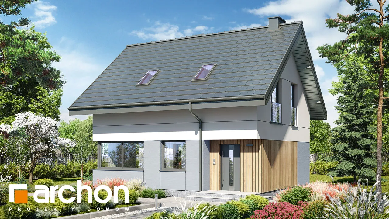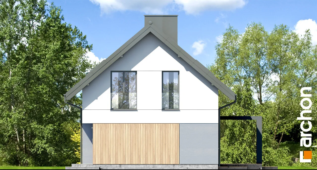 Привлекательный проект современного дома площадью до 70 м2, который характеризуется простым и недорогим корпусом постройки со скатной крышей, а внутри размещается удобная, рационально организованная функциональная планировка. Сдержанная штукатурка прекрасно гармонирует с натуральной облицовкой, дерево подчеркивает вход и зону террасы, придавая им выразительность. Пергола, запланированная над террасой, создает тень. Декоративность дома повышается за счет большого остекления, благодаря которому интерьеры солнечные и очень хорошо освещены. К ним относятся раздвижной проем в гостиной и впечатляющее высокое угловое окно в столовой. Кухня предлагает возможность использования программы с большим полуостровом, который может служить как современной зоной приготовления пищи, так и барной стойкой. Дополнительное место для хранения продуктов обеспечивает кладовая, спроектированная рядом с кухней. В нем также предусмотрено место для морозильной камеры. Функциональная планировка первого этажа включает также туалет и котельную, которую можно использовать в качестве прачечной. Двойная лестница ведет в мансарду, в ночную часть дома. Проживающие здесь имеют три комфортабельные комнаты, среди которых спальня родителей с гардеробной. Все комнаты прекрасно освещены. В каждой спальне предусмотрено место для хранения вещей. "Дом в мотыльках 3" относится к коллекции: проекты небольших домов, проекты домов до 70 м2 площади застройки, проекты домов недорогих в строительстве, проекты домов с жилой мансардой.