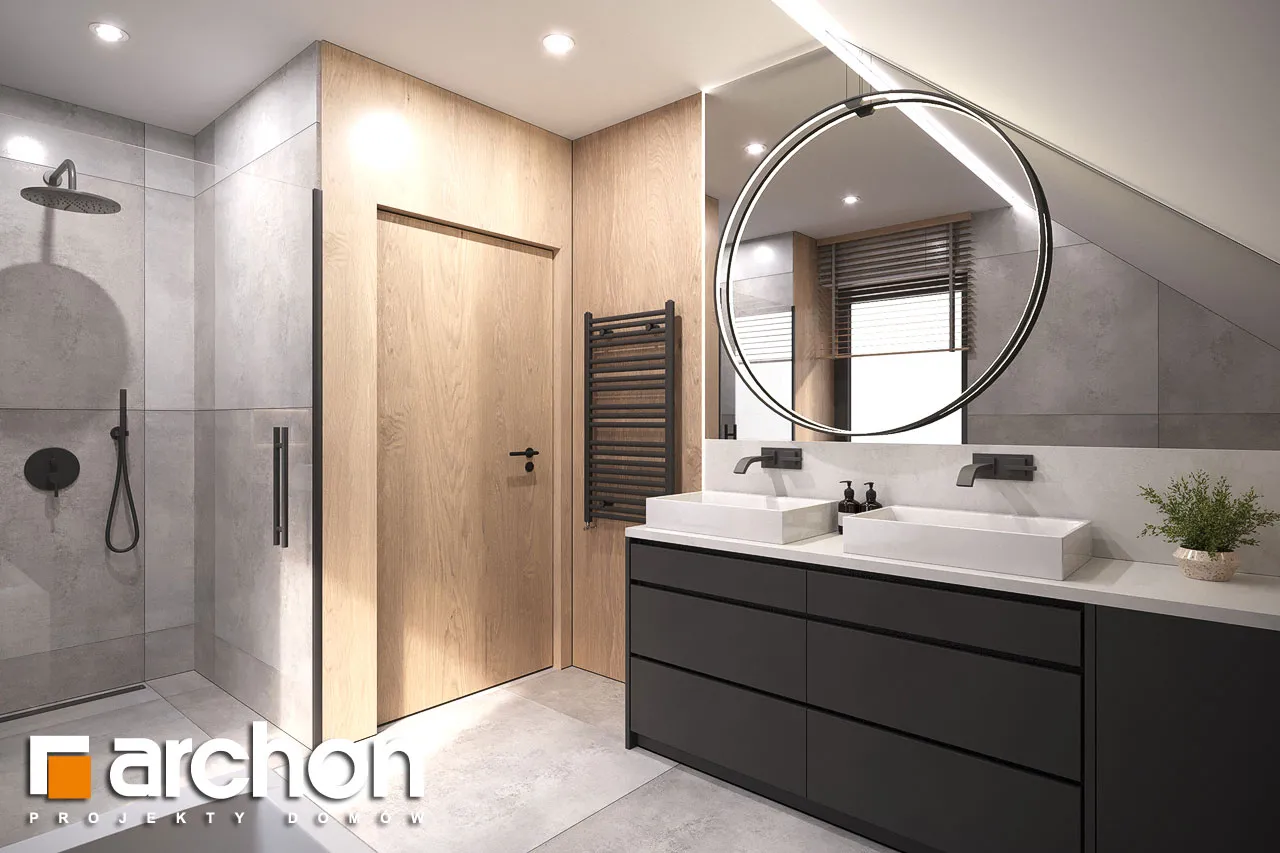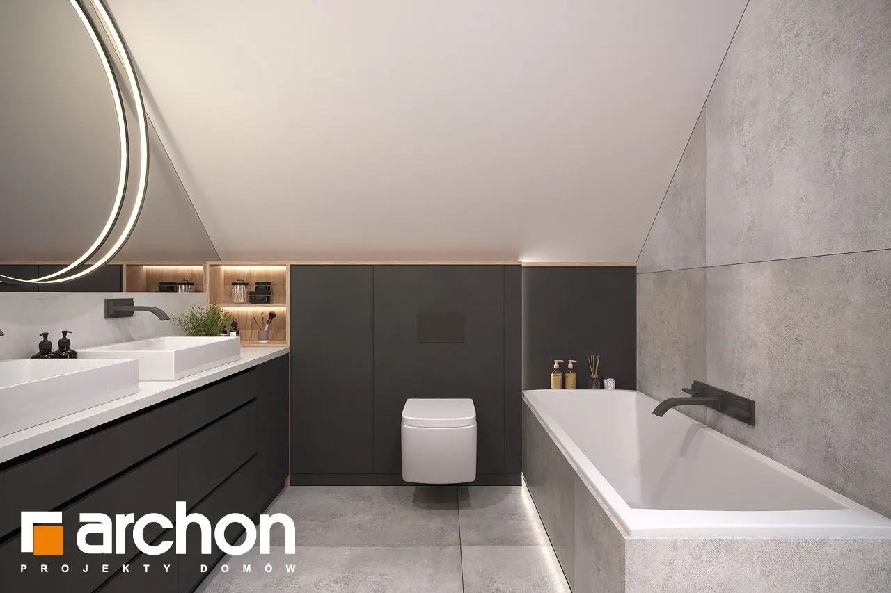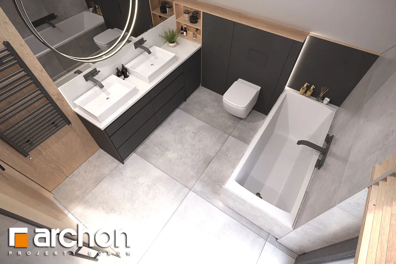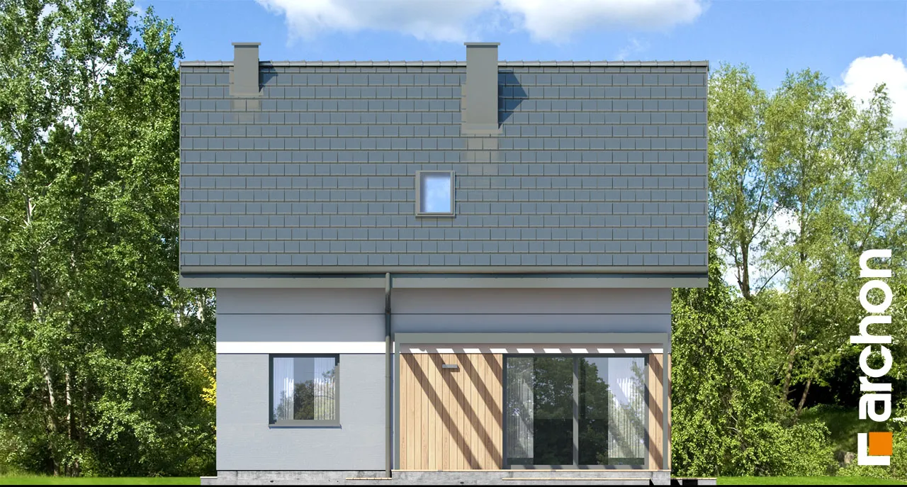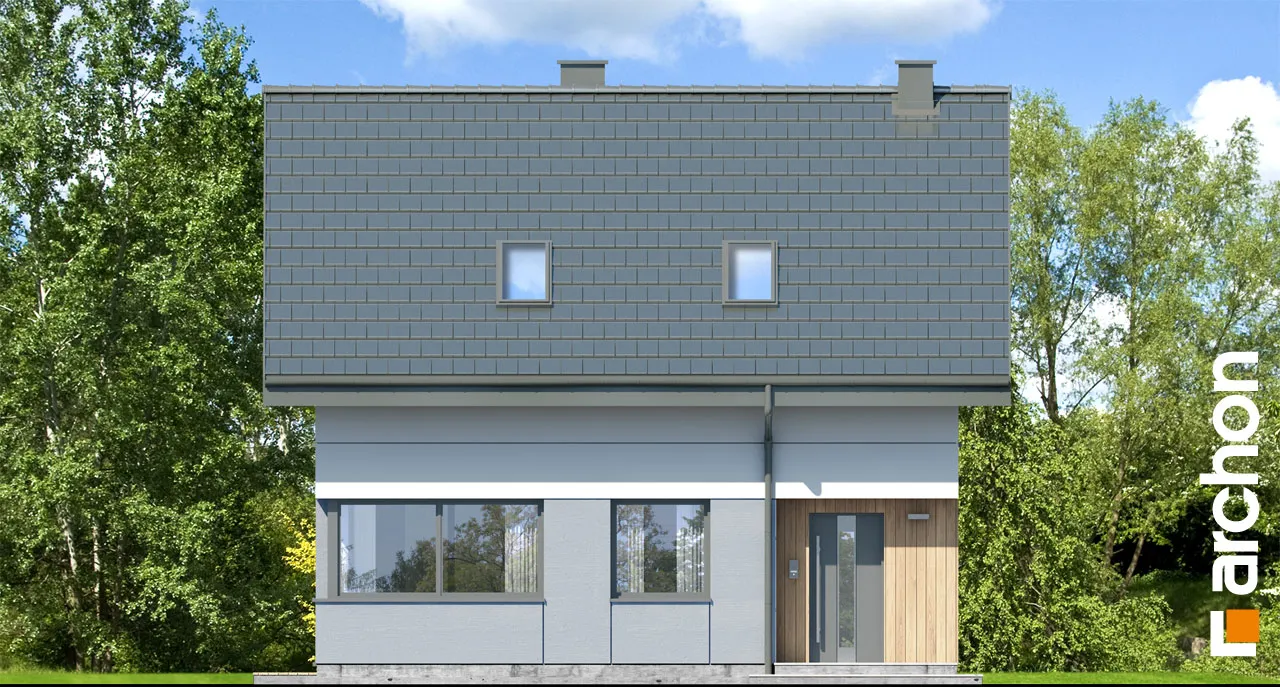 Привлекательный проект современного дома площадью до 70 м2, который характеризуется простым и недорогим корпусом постройки со скатной крышей, а внутри размещается удобная, рационально организованная функциональная планировка. Сдержанная штукатурка прекрасно гармонирует с натуральной облицовкой, дерево подчеркивает вход и зону террасы, придавая им выразительность. Пергола, запланированная над террасой, создает тень. Декоративность дома повышается за счет большого остекления, благодаря которому интерьеры солнечные и очень хорошо освещены. К ним относятся раздвижной проем в гостиной и впечатляющее высокое угловое окно в столовой. Кухня предлагает возможность использования программы с большим полуостровом, который может служить как современной зоной приготовления пищи, так и барной стойкой. Дополнительное место для хранения продуктов обеспечивает кладовая, спроектированная рядом с кухней. В нем также предусмотрено место для морозильной камеры. Функциональная планировка первого этажа включает также туалет и котельную, которую можно использовать в качестве прачечной. Двойная лестница ведет в мансарду, в ночную часть дома. Проживающие здесь имеют три комфортабельные комнаты, среди которых спальня родителей с гардеробной. Все комнаты прекрасно освещены. В каждой спальне предусмотрено место для хранения вещей. "Дом в мотыльках 3" относится к коллекции: проекты небольших домов, проекты домов до 70 м2 площади застройки, проекты домов недорогих в строительстве, проекты домов с жилой мансардой.