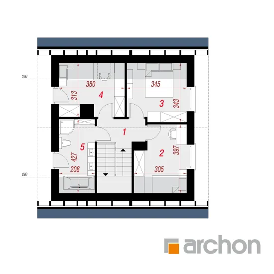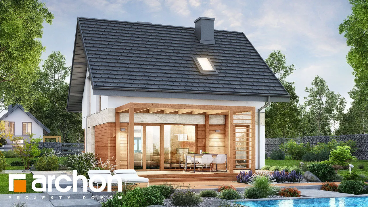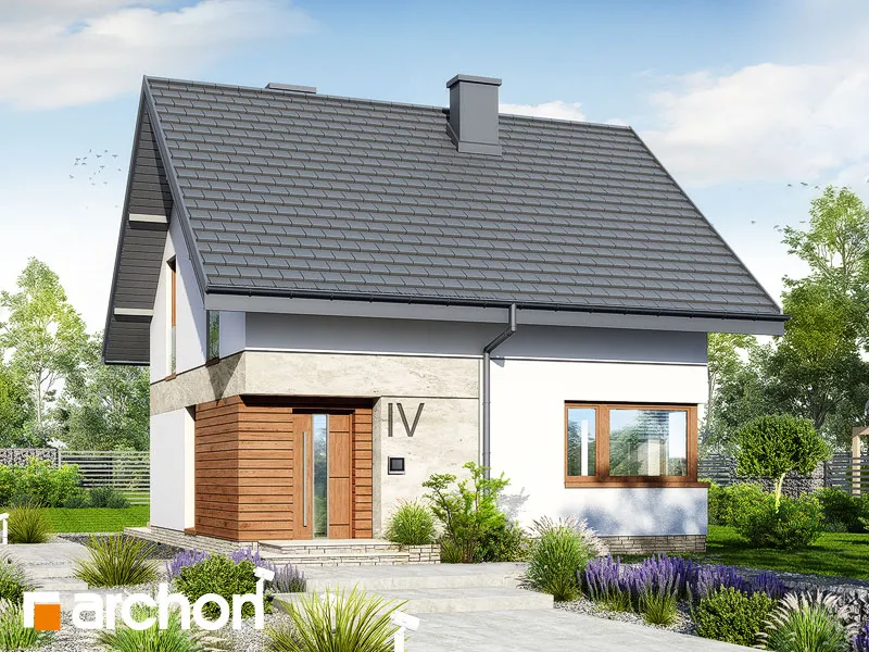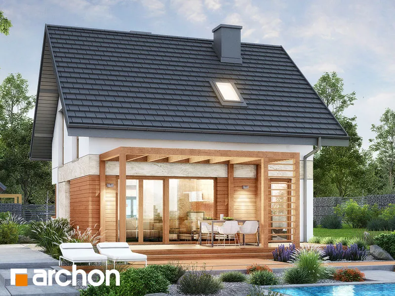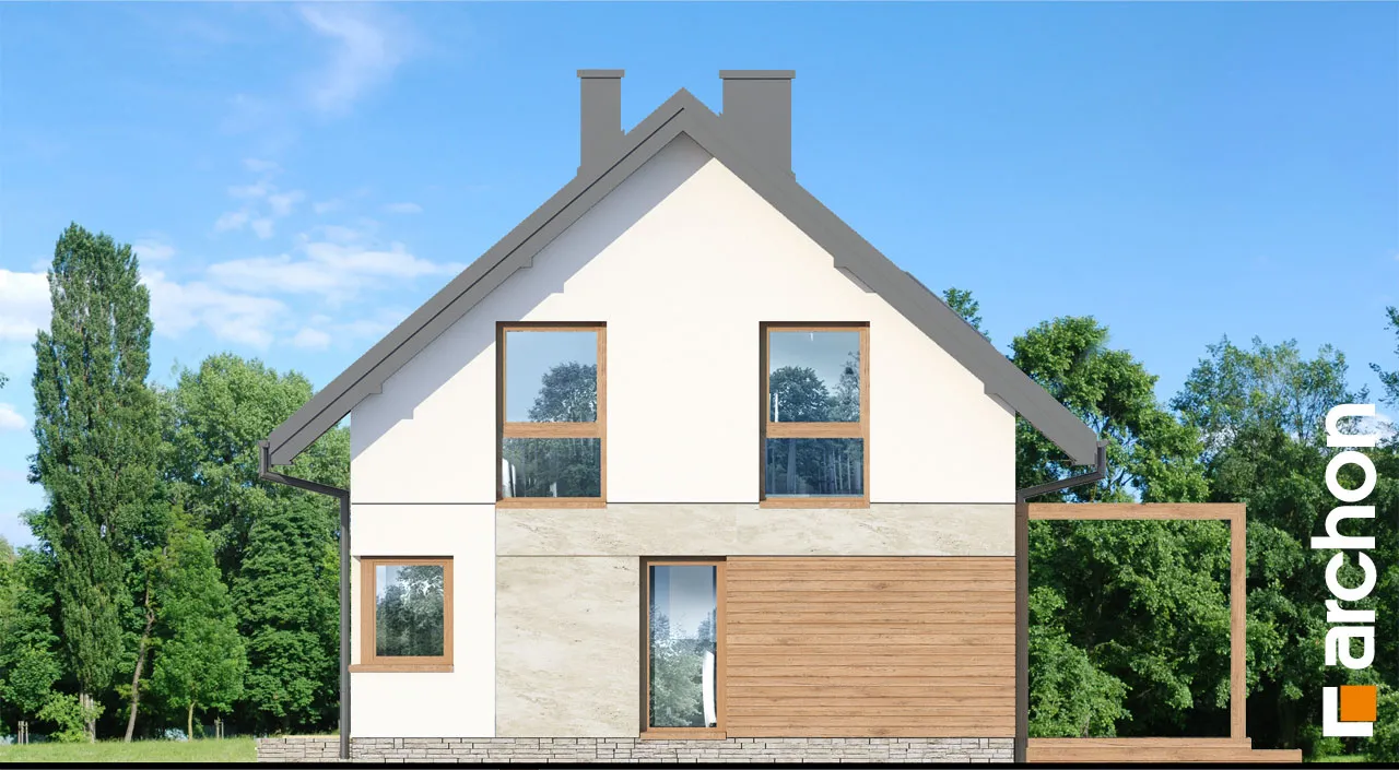 Простой, эффективный и недорогой проект дома до 70 м2 площади застройки, вмещающий удобную функциональную планировку и гарантирующий комфорт использования. Передняя часть здания привлекает внимание интересной входной аркой, которая подчеркнута деревянной облицовкой. Дерево дополняет атмосферу зоны террасы, над которой также запланирована легкая пергола. Двускатная крыша покрыта плоской черепицей, антрацитовый цвет которой дополняет всю композицию. Дневная зона включает в себя уютную гостиную с гарнитуром для отдыха, столовая зона также отделена, а терраса, на которую можно выйти отсюда, приглашает членов семьи отдохнуть на свежем воздухе. На границе кухни можно организовать барную стойку для завтрака, а просторные столешницы, высокие встроенные шкафы и прилегающая кладовая обеспечивают удобство работы и хранения. Подсобное помещение на первом этаже имеет отдельный туалет и предоставляет место для газового котла, а также стиральной машины и сушилки. В мансарде, куда ведет удобная двойная лестница, расположены три отдельные спальни и большая ванная комната с ванной и душем. "Дом в квинслендах 2" - это интересный проект, который относится к таким категориям, как: проекты домов до 70 м2 площади застройки, проекты небольших домов, проекты современных домов, проекты домов для узкого участка.