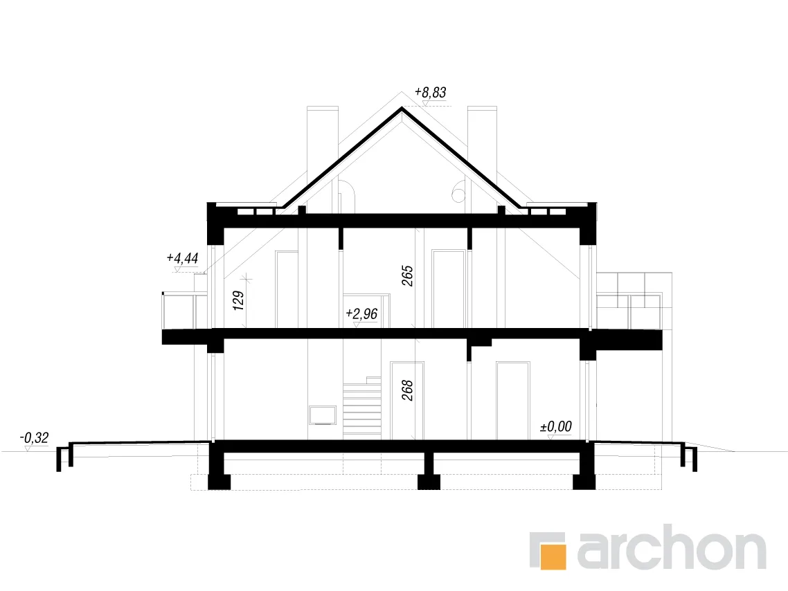 - Разрезы со всеми размерами (высоты этажей, кровли и др.)